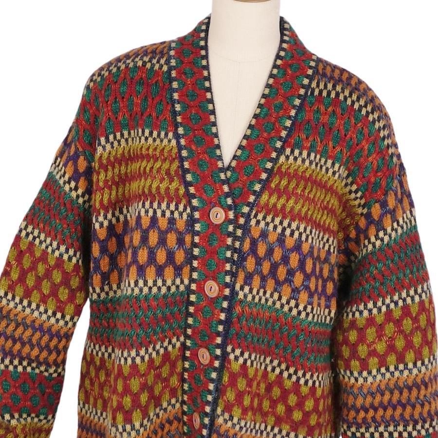 ■商品名ミッソーニ MISSONI カーディガン ニット 総柄 ウール モヘア トップス レディース イタリア製 マルチカラー サイズM~L相当■状態説明・柔らかく上質なウールモヘアブレンド素材を使用した、MISSONIのカーディガンです♪・秋冬シーズンでお使い頂ける一品です◎・イタリア製・USEDですが気になるようなキズや汚れなどはなく全体的にキレイな状態です!【季節感:秋冬】【付属品:なし】■素材ウール77% モヘア17% ナイロン6%■カラーマルチカラー■表記サイズM~L相当■実寸サイズ着丈:約78cm身幅:約56cm肩幅:約51cm袖丈:約58cm■状態ランクA 使用感の少ない全体的にキレイなUSED品■店舗管理番号ce08do-rm10e32992womens_multi