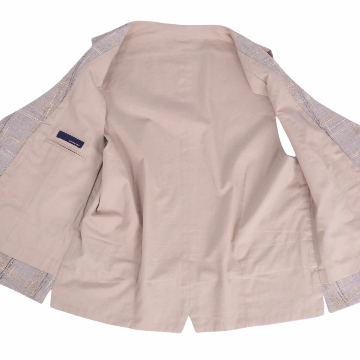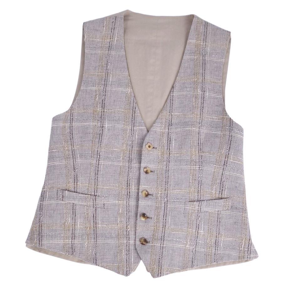 Pre-owned LARDINI Men's Check Vest/Gilet, Cotton/Linen, Made in Italy, Size 50 (equivalent to M), Gray. Excellent Condition.