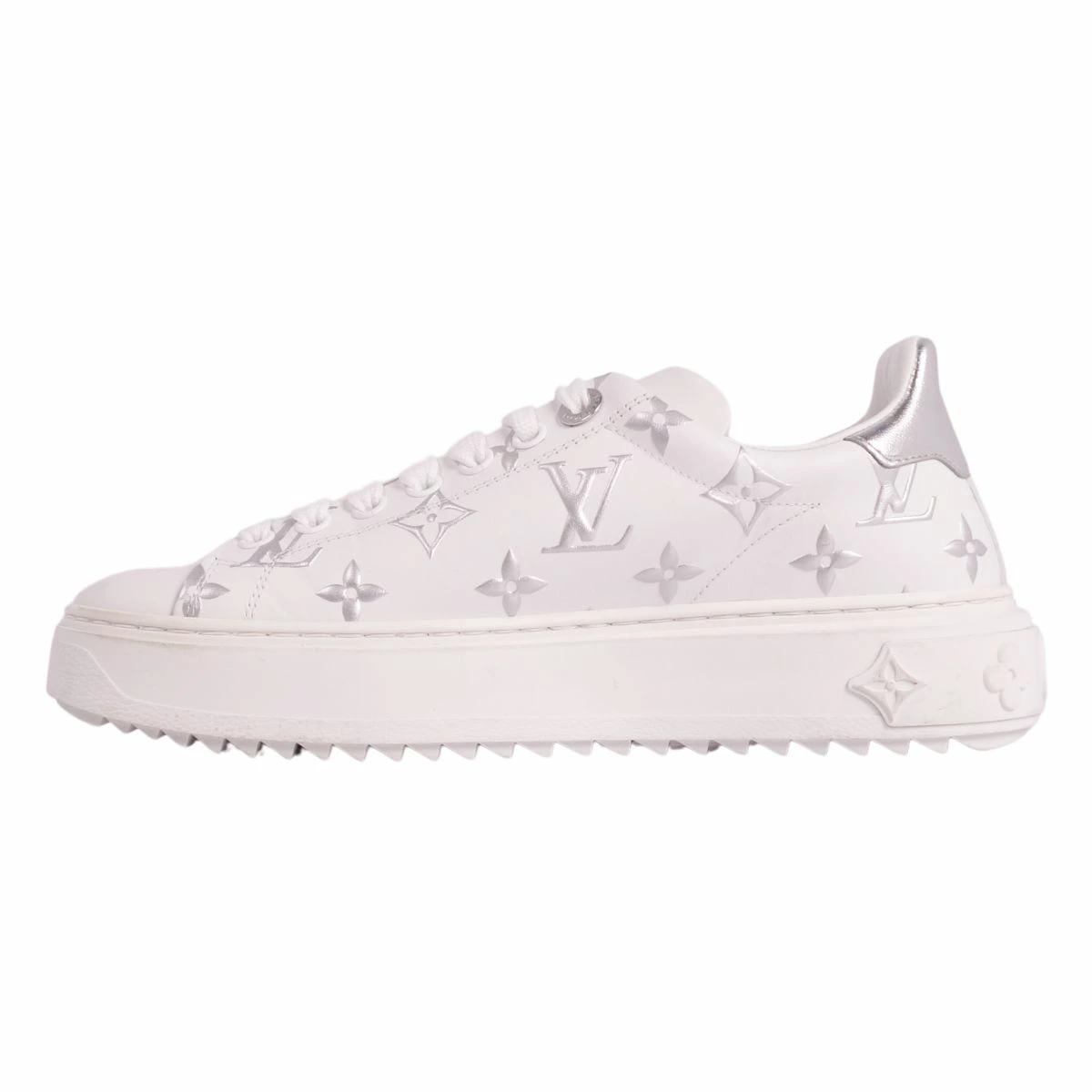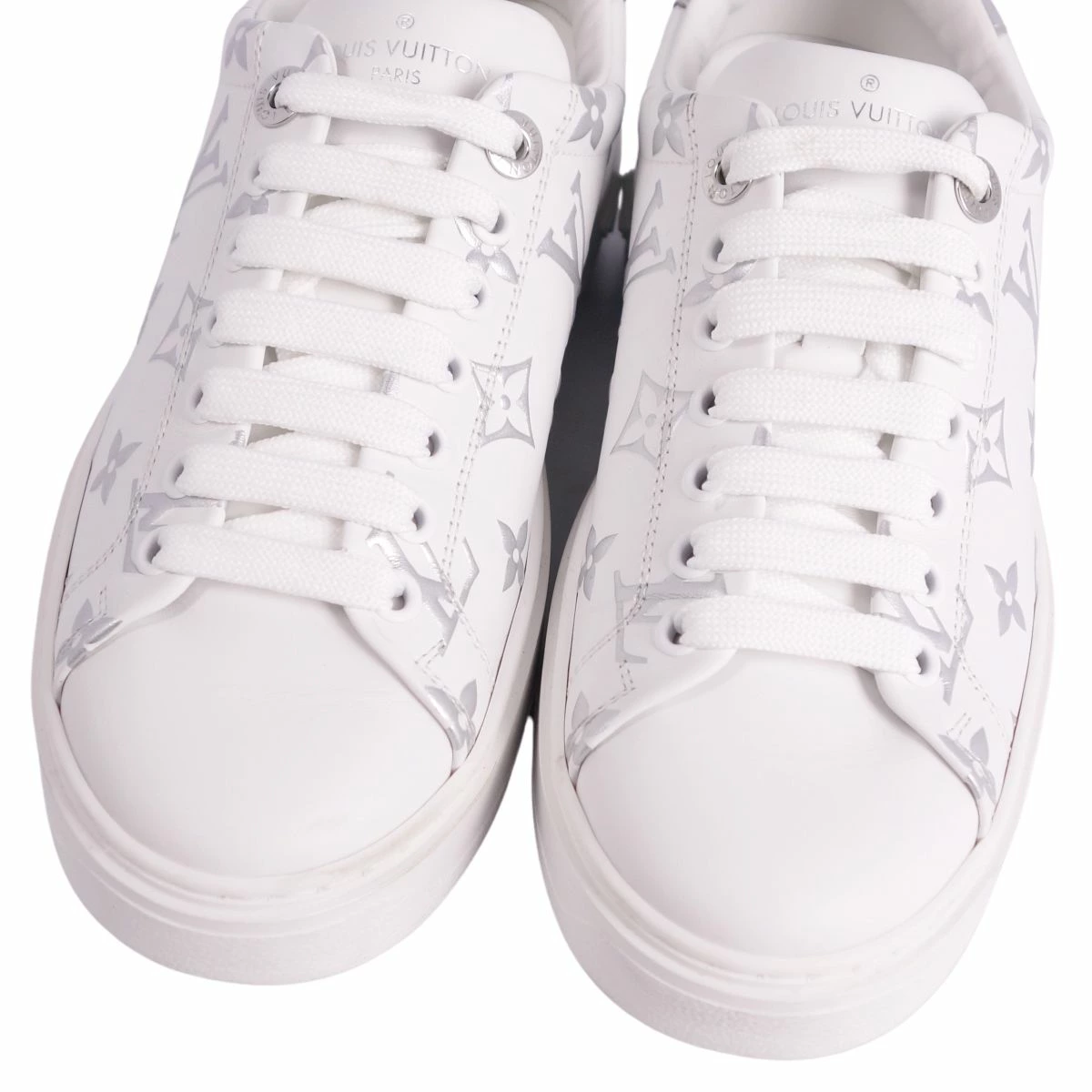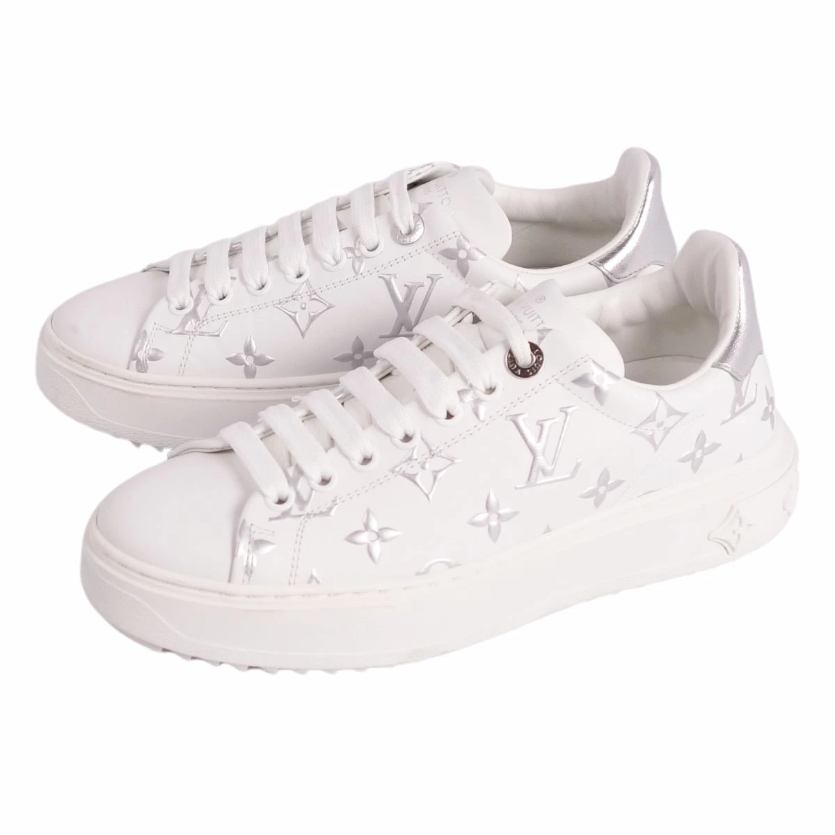 Pre-owned Louis Vuitton Time Out Line Lace-Up Monogram Sneakers, Women's, Made in Italy, Size 36 (equivalent to 23cm), White. Excellent Condition.