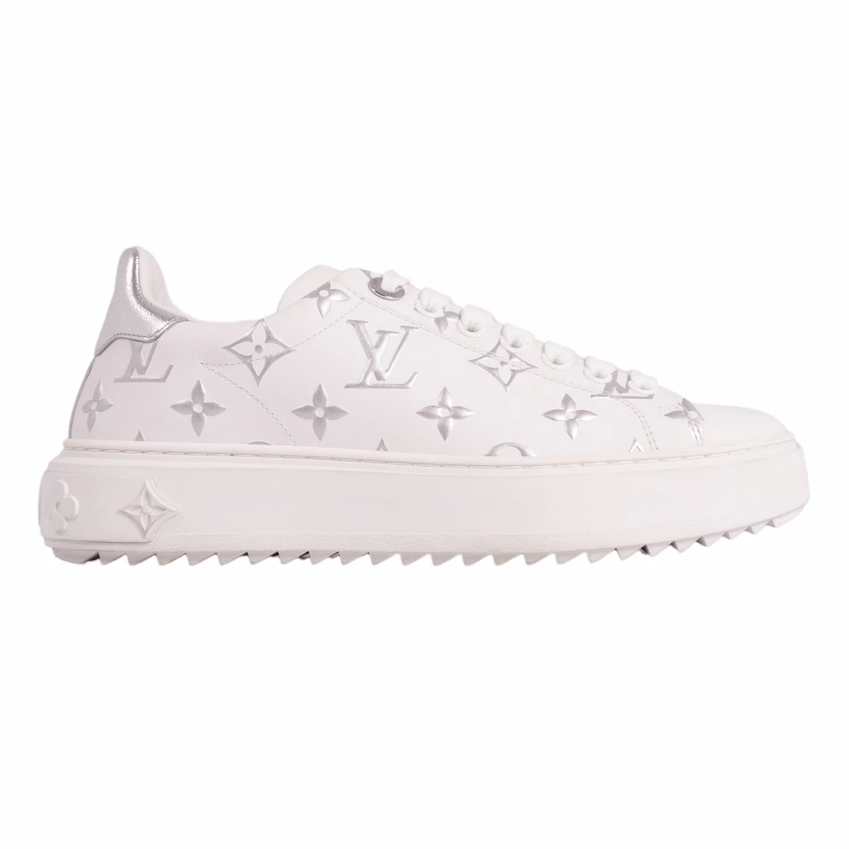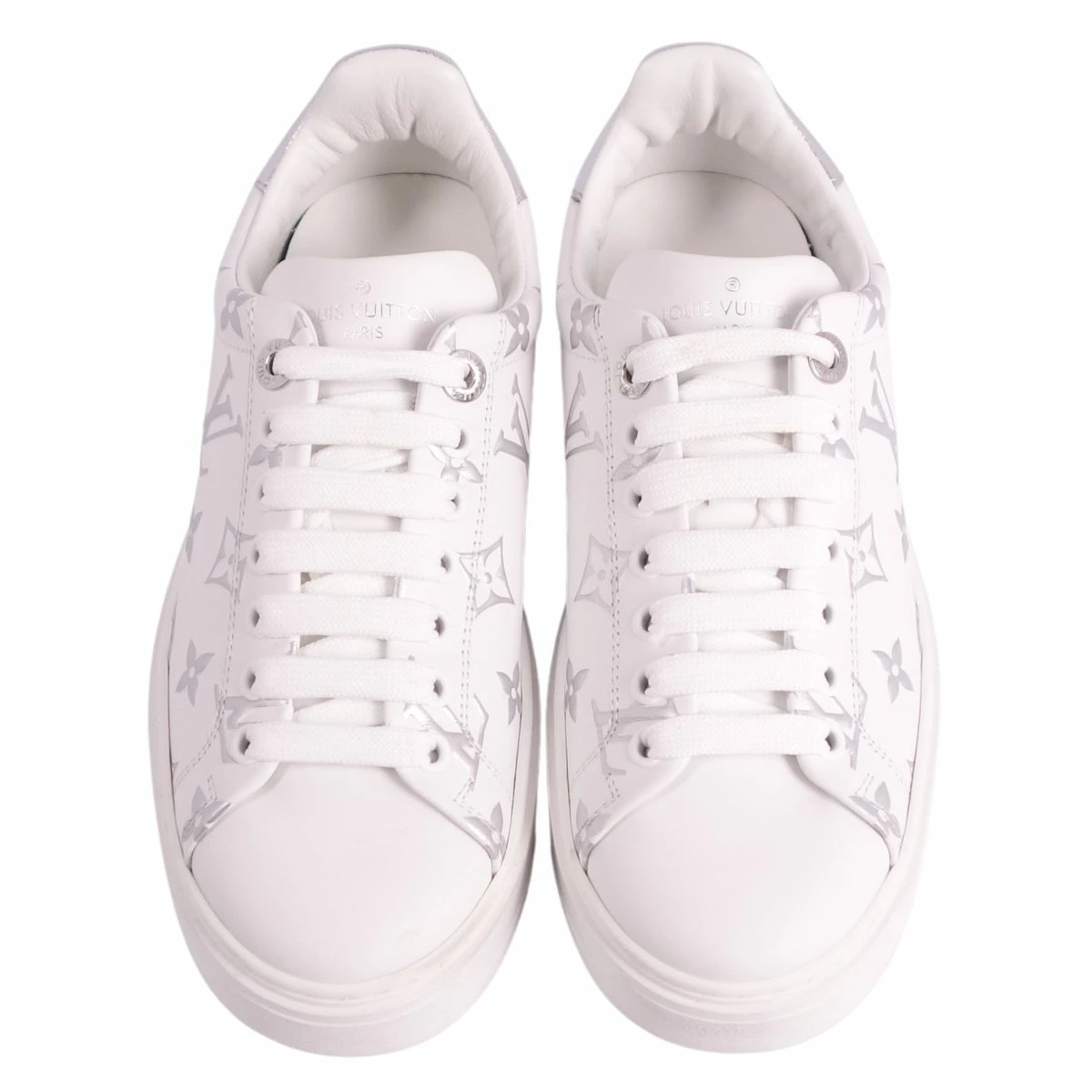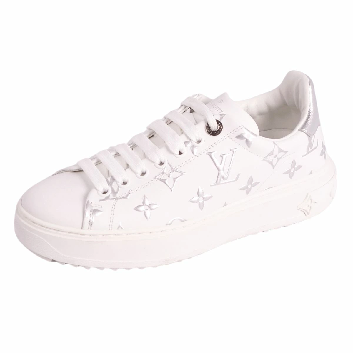 Pre-owned Louis Vuitton Time Out Line Lace-Up Monogram Sneakers, Women's, Made in Italy, Size 36 (equivalent to 23cm), White. Excellent Condition.