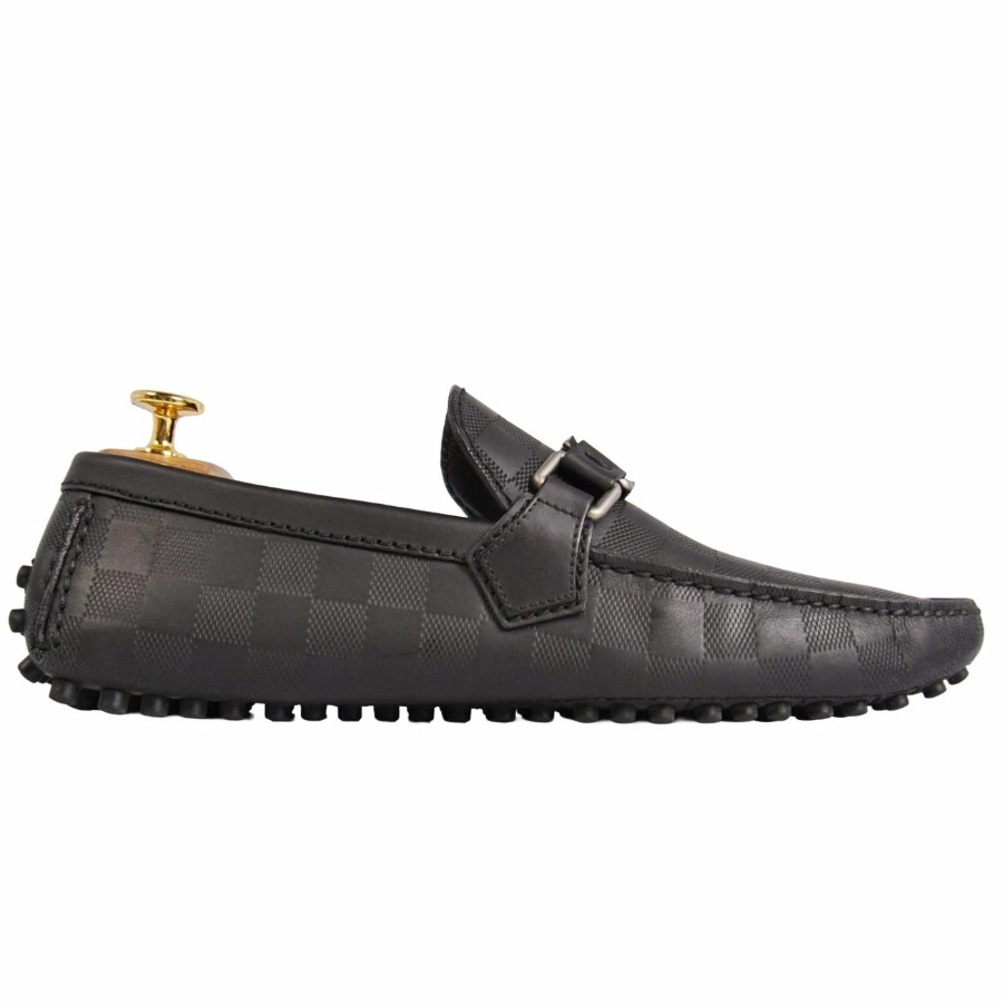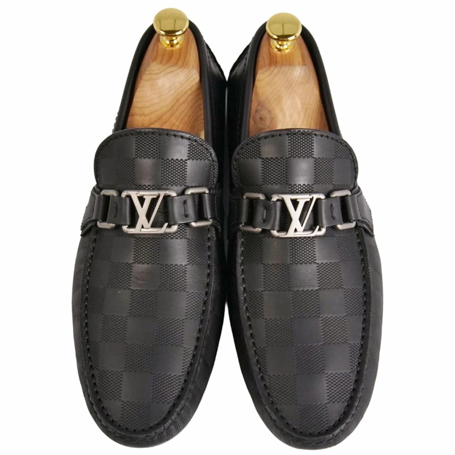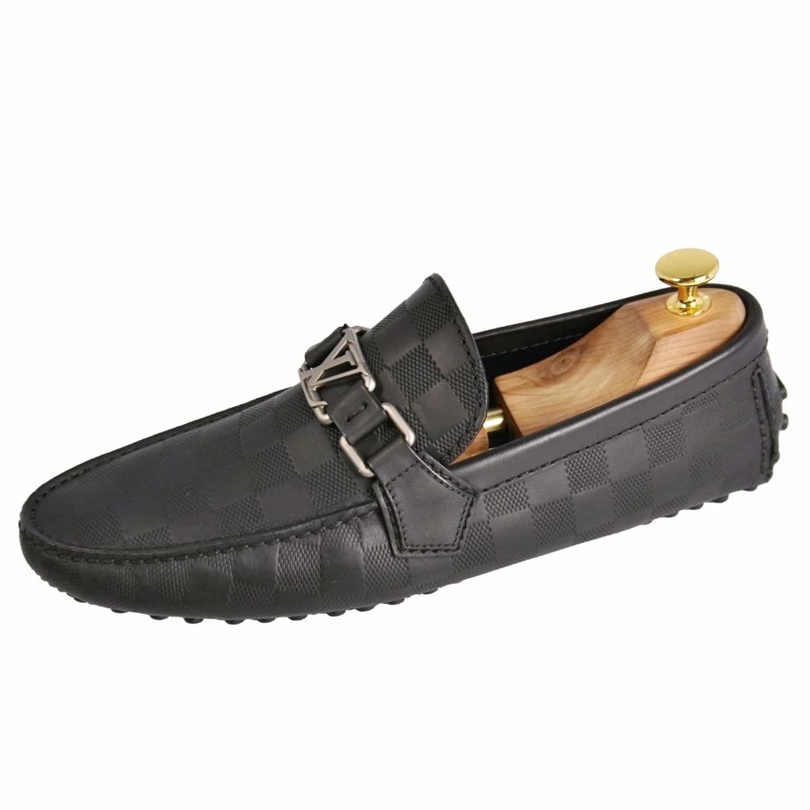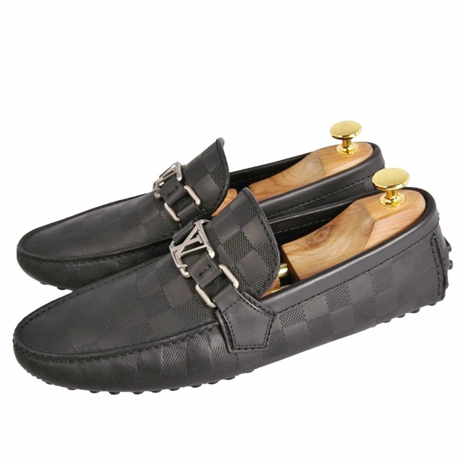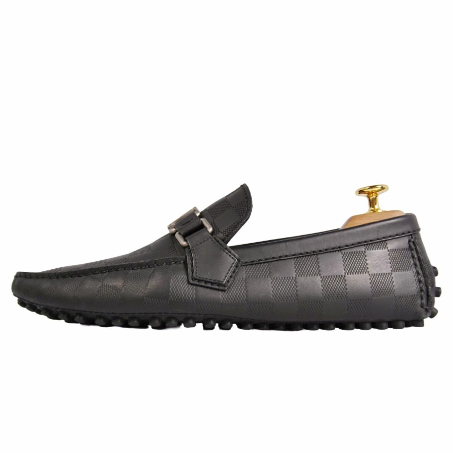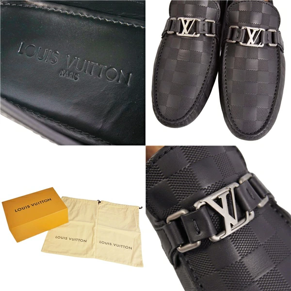 ルイヴィトン LOUIS VUITTON ローファー ホッケンハイム ライン モカシン ドライビングシューズ LV金具 ダミエ レザー シューズ 靴 メンズ ブラック サイズ6(25cm相当)