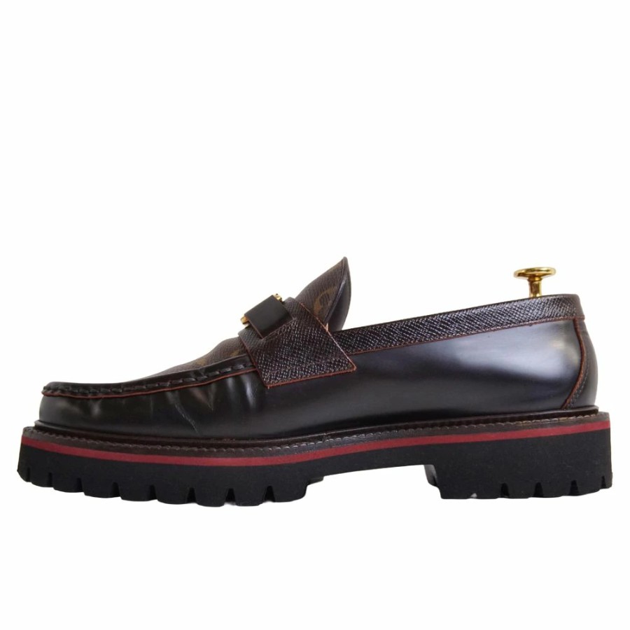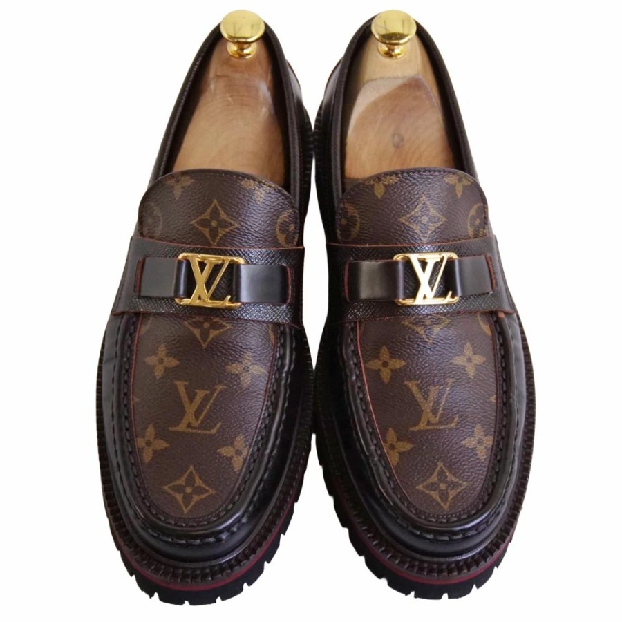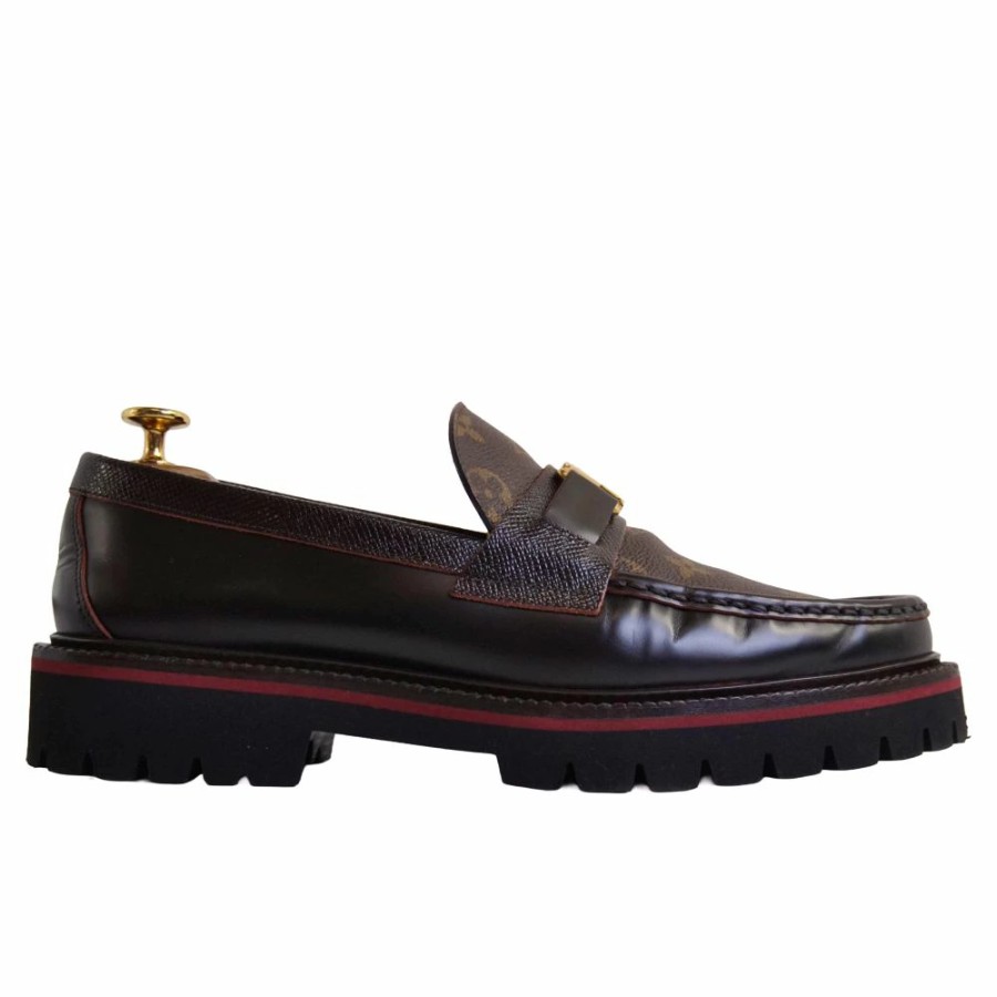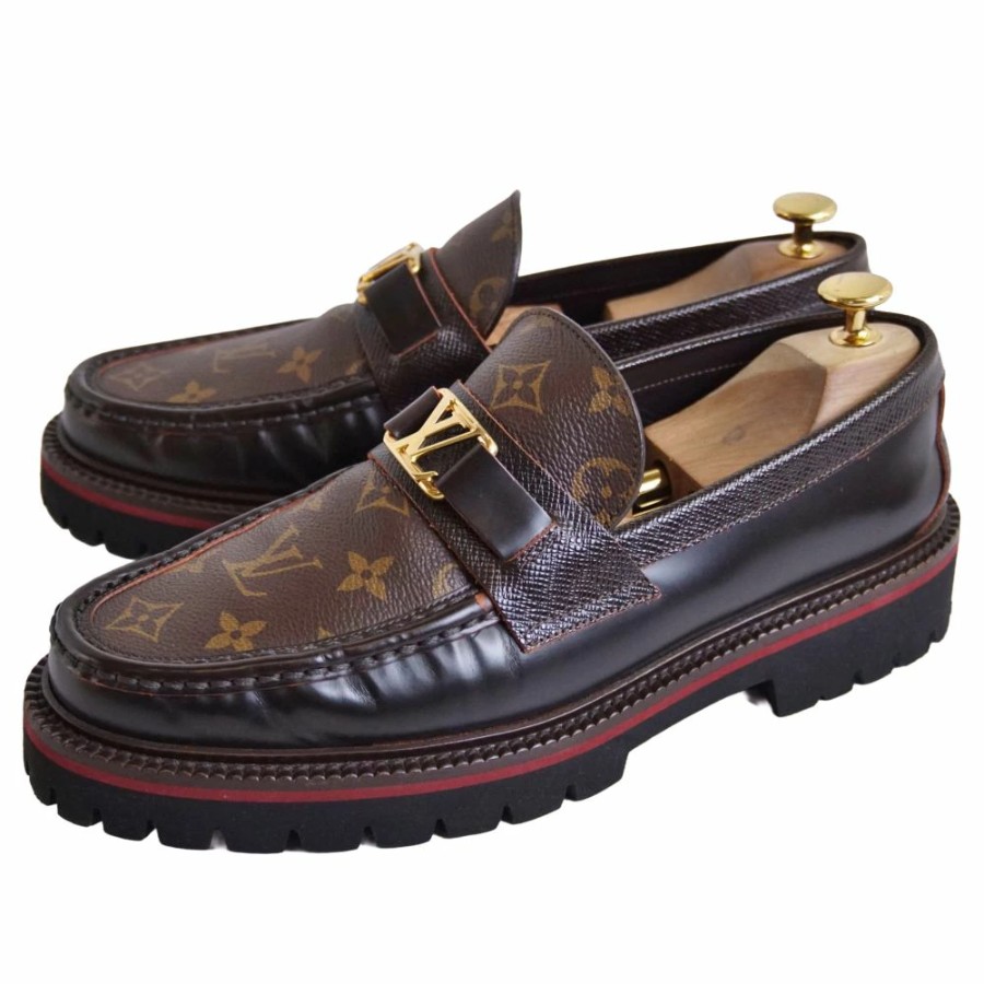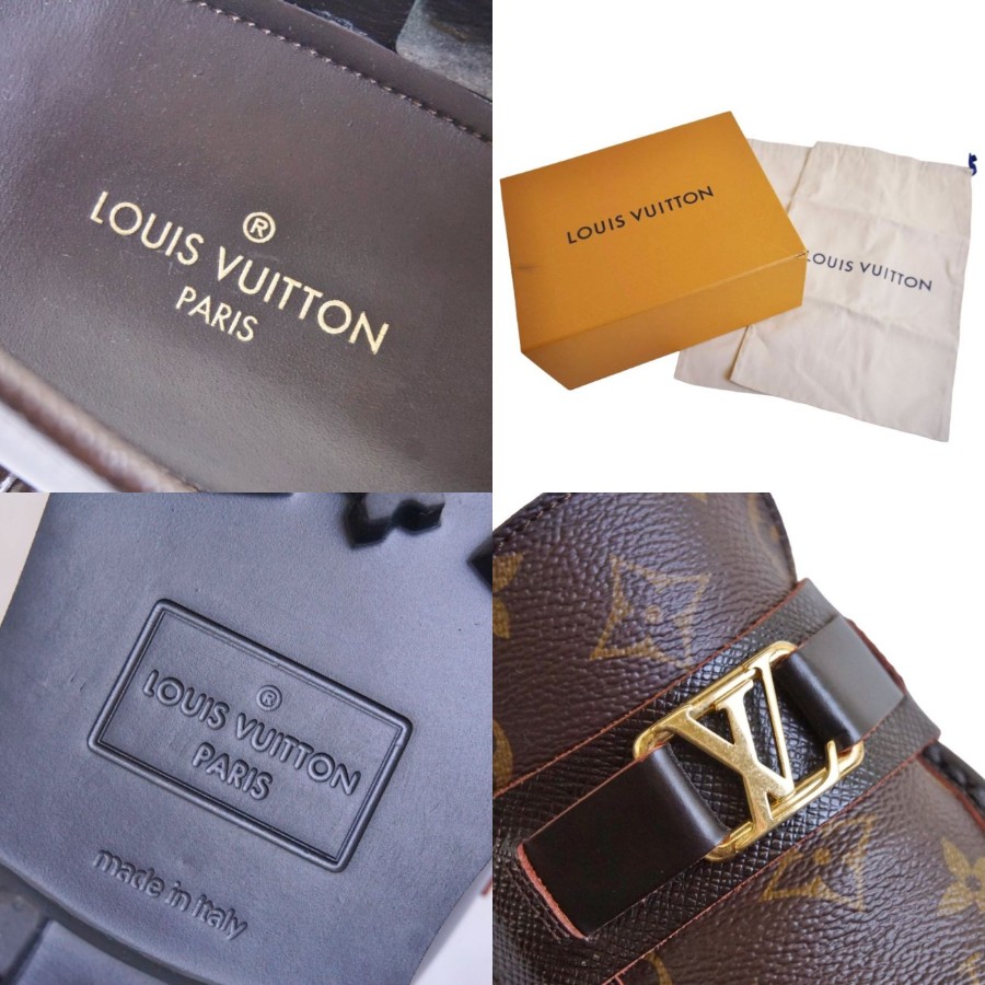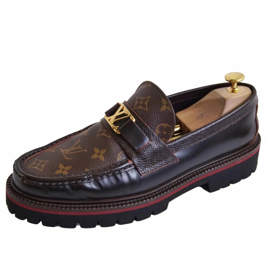 ルイヴィトン LOUIS VUITTON ローファー メジャーライン モカシン モノグラムキャンバス LV金具 革靴 メンズ イタリア製 ブラウン サイズ8M(26.5cm相当)