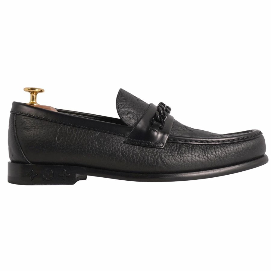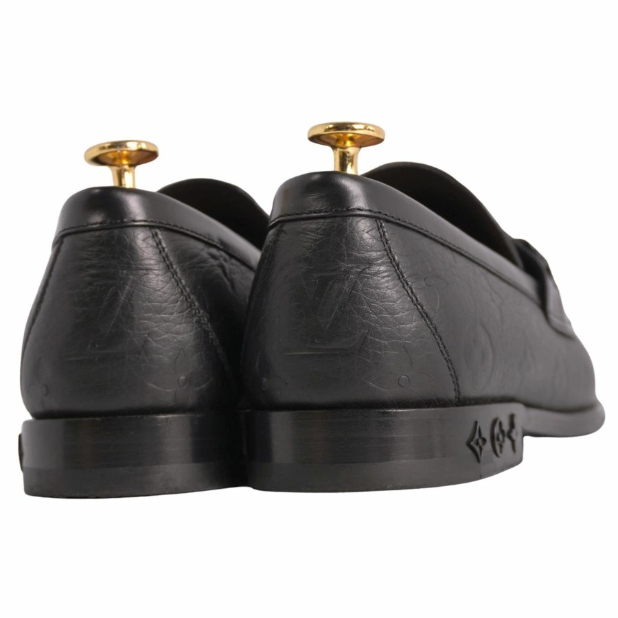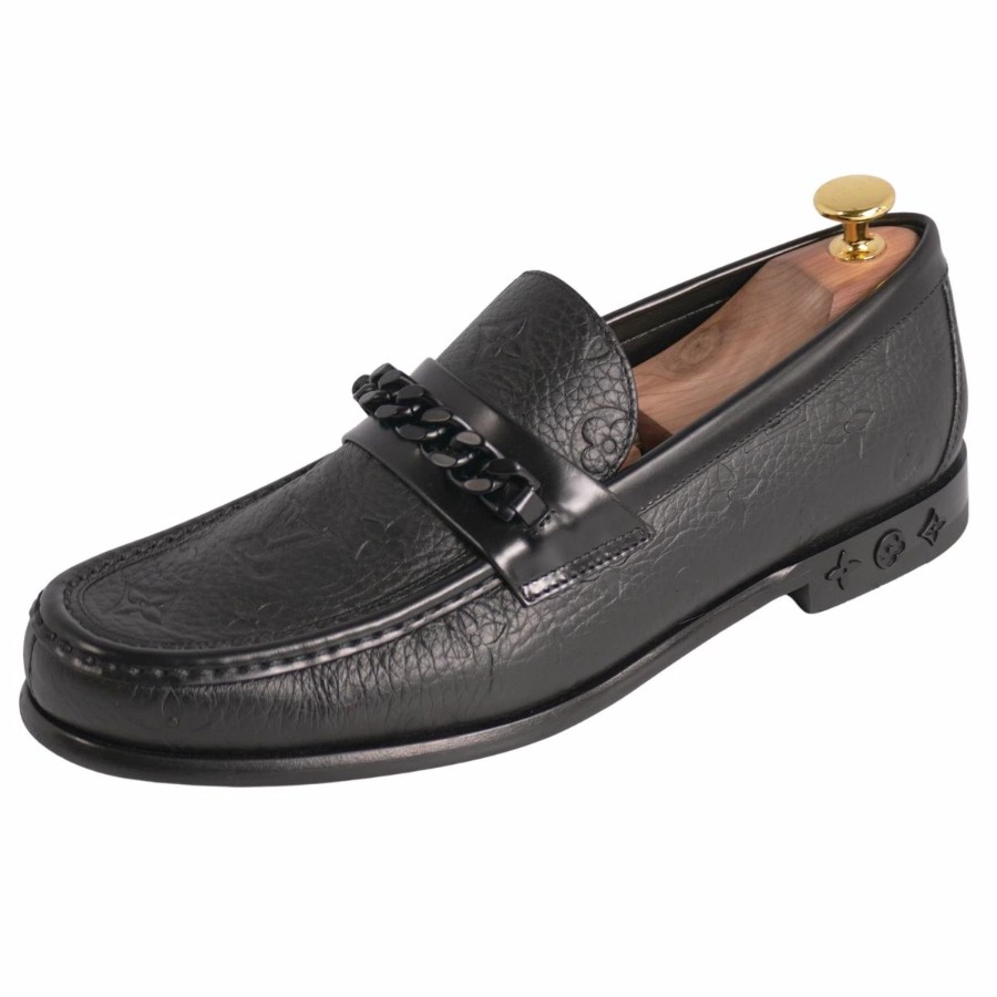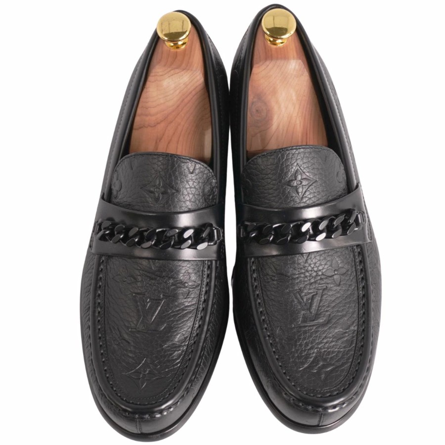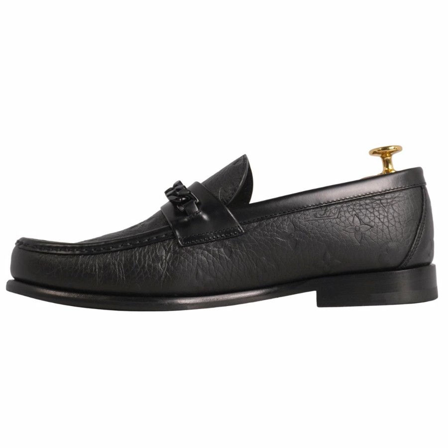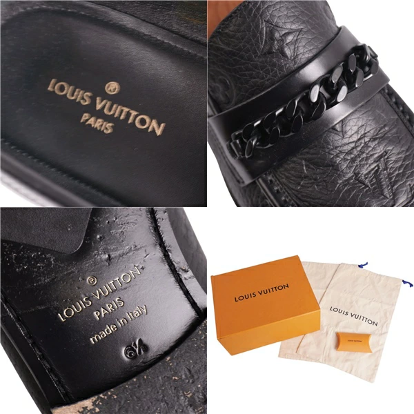 ルイヴィトン LOUIS VUITTON ローファー モカシン チェーン モノグラム レザー シューズ 靴 メンズ イタリア製 ブラック サイズ6.5(25.5cm相当)