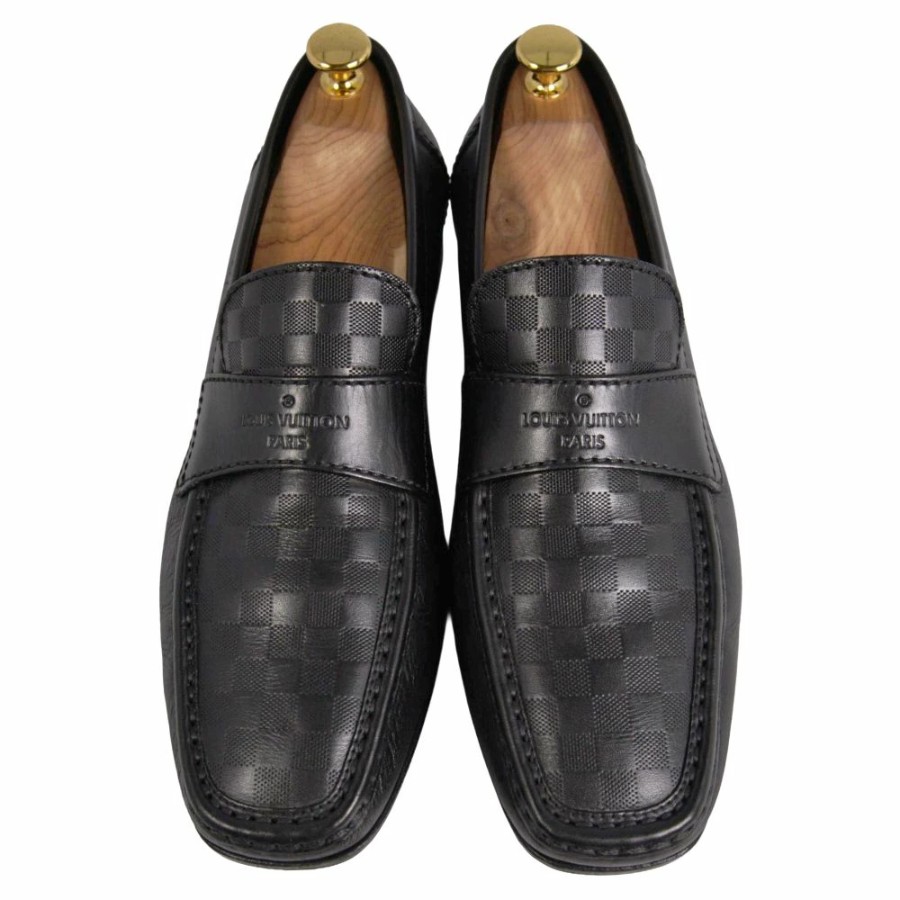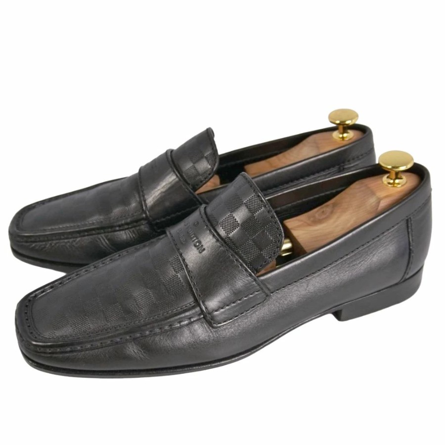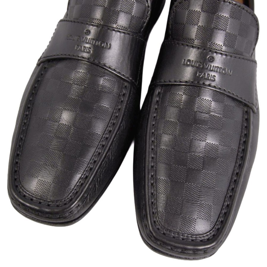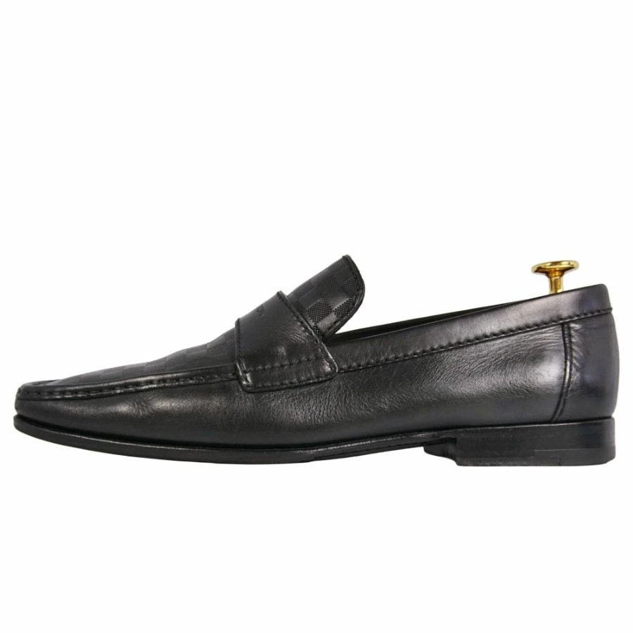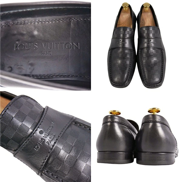 ルイヴィトン LOUIS VUITTON ローファー モカシン ビジネスシューズ ダミエ レザー シューズ 革靴 メンズ イタリア製 ブラック サイズ7M(26cm相当)