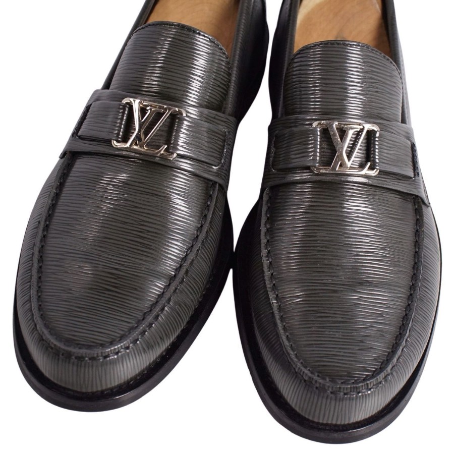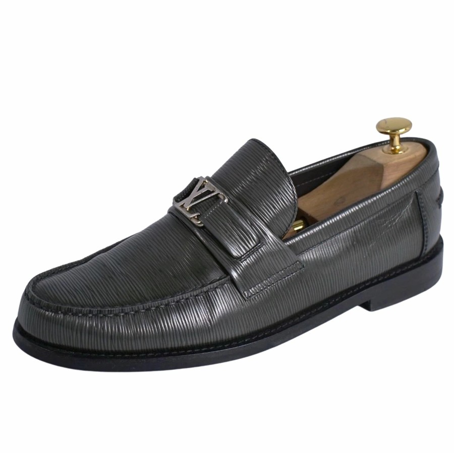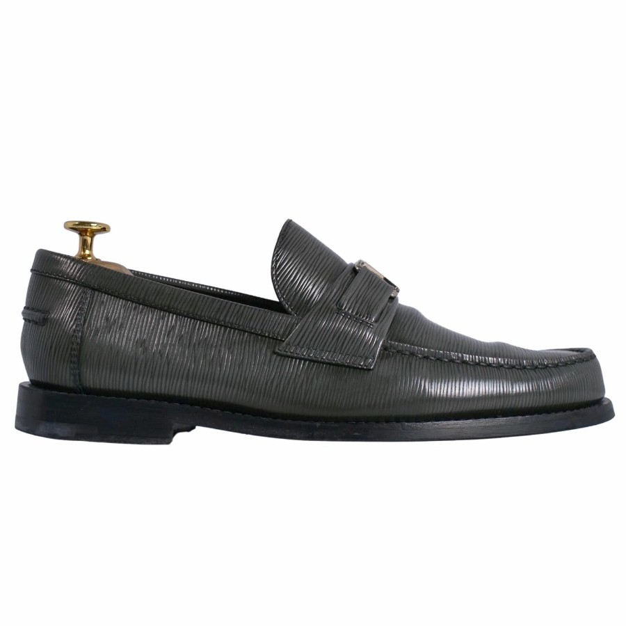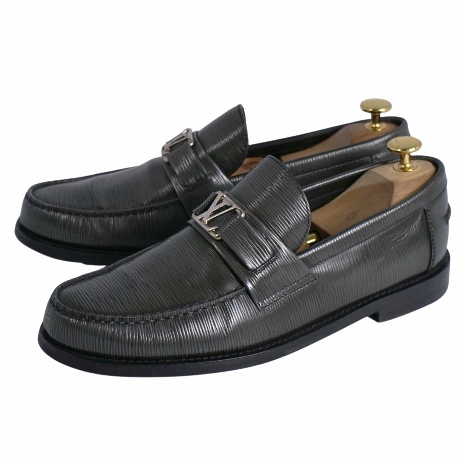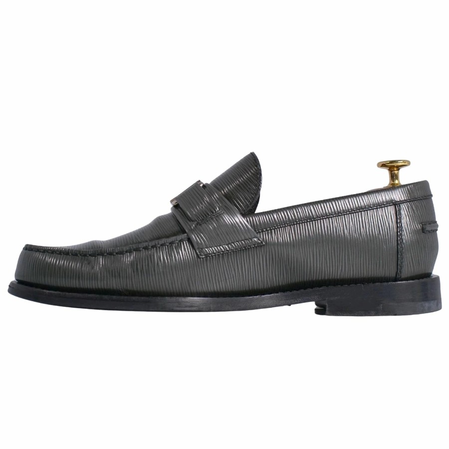 ルイヴィトン LOUIS VUITTON ローファー モカシン メジャーライン LVロゴ金具 エピーレザー シューズ メンズ イタリア製 グレー サイズ6(25cm相当)