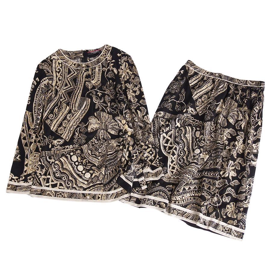 ■商品名レオナール LEONARD FASHION セットアップ シャツ ブラウス スカート 総柄 ウール シルク レディース マルチカラー サイズL■状態説明・肌触りの良い薄手のウールシルク素材を使用した、LEONARD FASHIONのセットアップ(ブラウス/スカート)です♪・春秋シーズンでお使いいただける一着です◎・日本製・国内正規取扱品です。・USEDですが気になるようなキズや汚れなどはなく全体的にキレイな状態です!【季節感:春秋】【付属品:なし】■素材本体:ウール60% シルク40% スカート裏地:キュプラ100%■カラーマルチカラー■表記サイズL■実寸サイズ着丈:約59.5cm身幅:約44cm肩幅:約40cm袖丈:約55.5cmボトムスウエスト/ヒップ:約68/98cm/cm裾幅/総丈:約58/65cm/cm■状態ランクA 使用感の少ない全体的にキレイなUSED品■店舗管理番号ce11mb-rm20f13713womens_multi womens_l