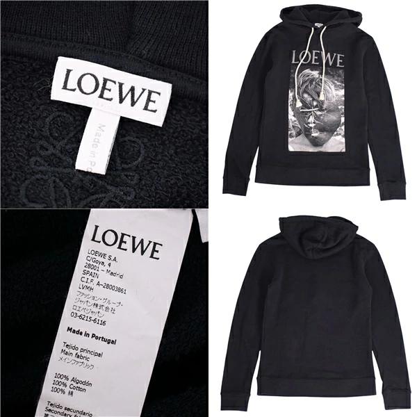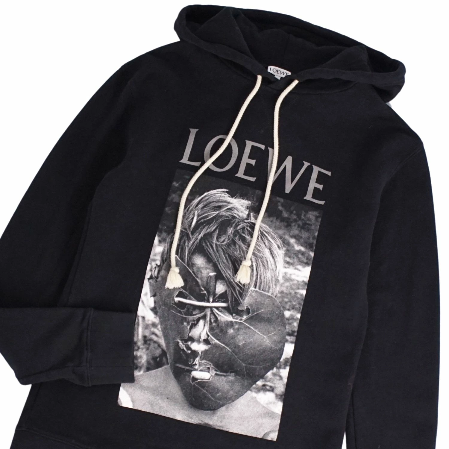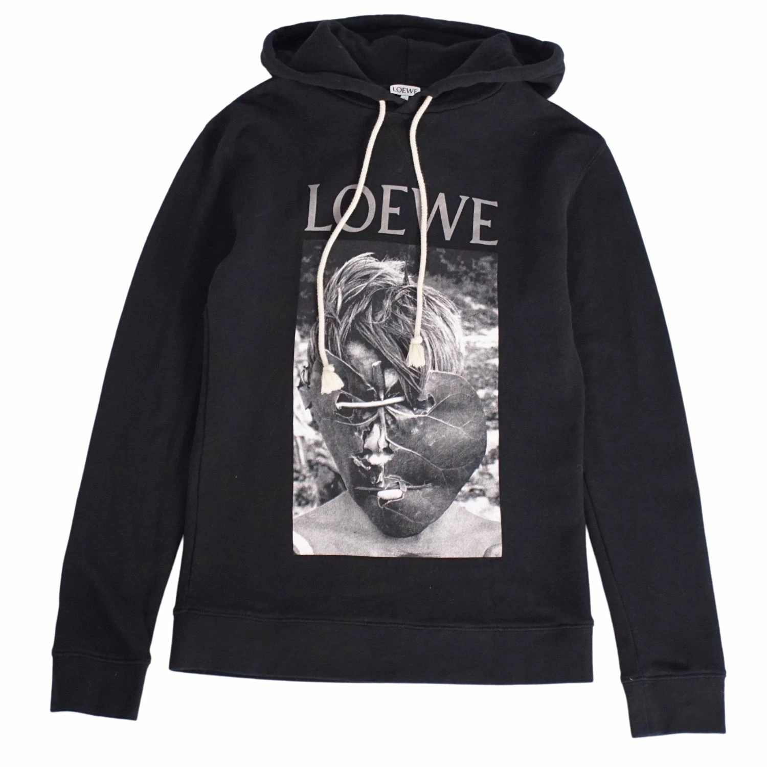 Pre-owned LOEWE Men's Long Sleeve Hoodie with Logo, Cotton, Size XS, Black. Excellent Condition.