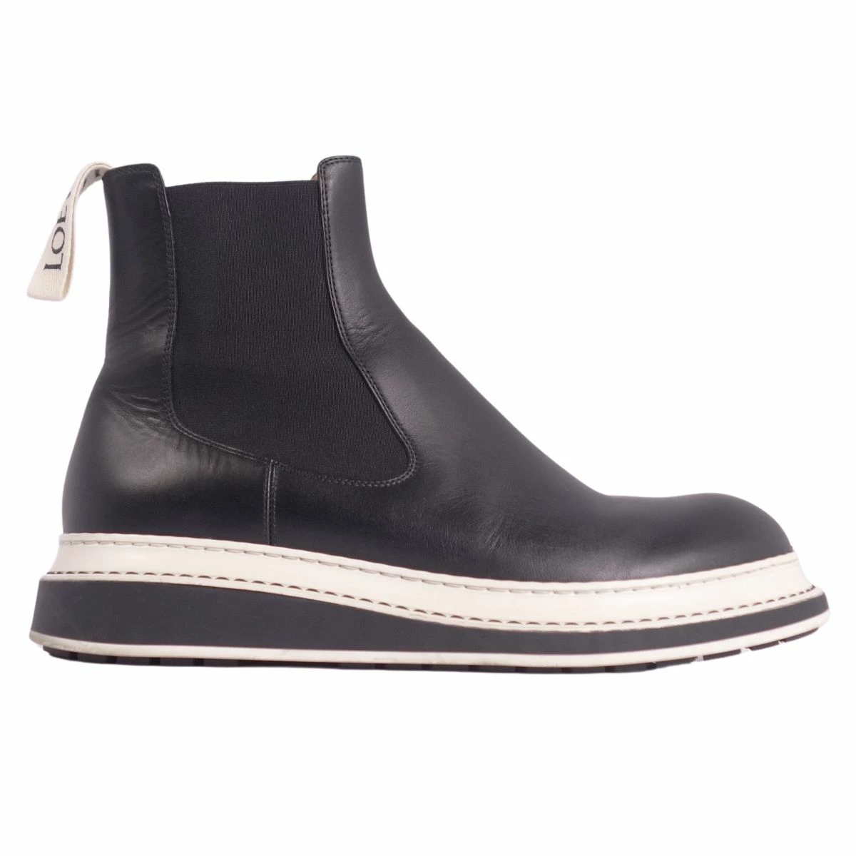 Pre-owned LOEWE Chelsea boots in excellent condition. Side-gore leather boots, men's, made in Italy, size 42 (equivalent to 27cm), black.
