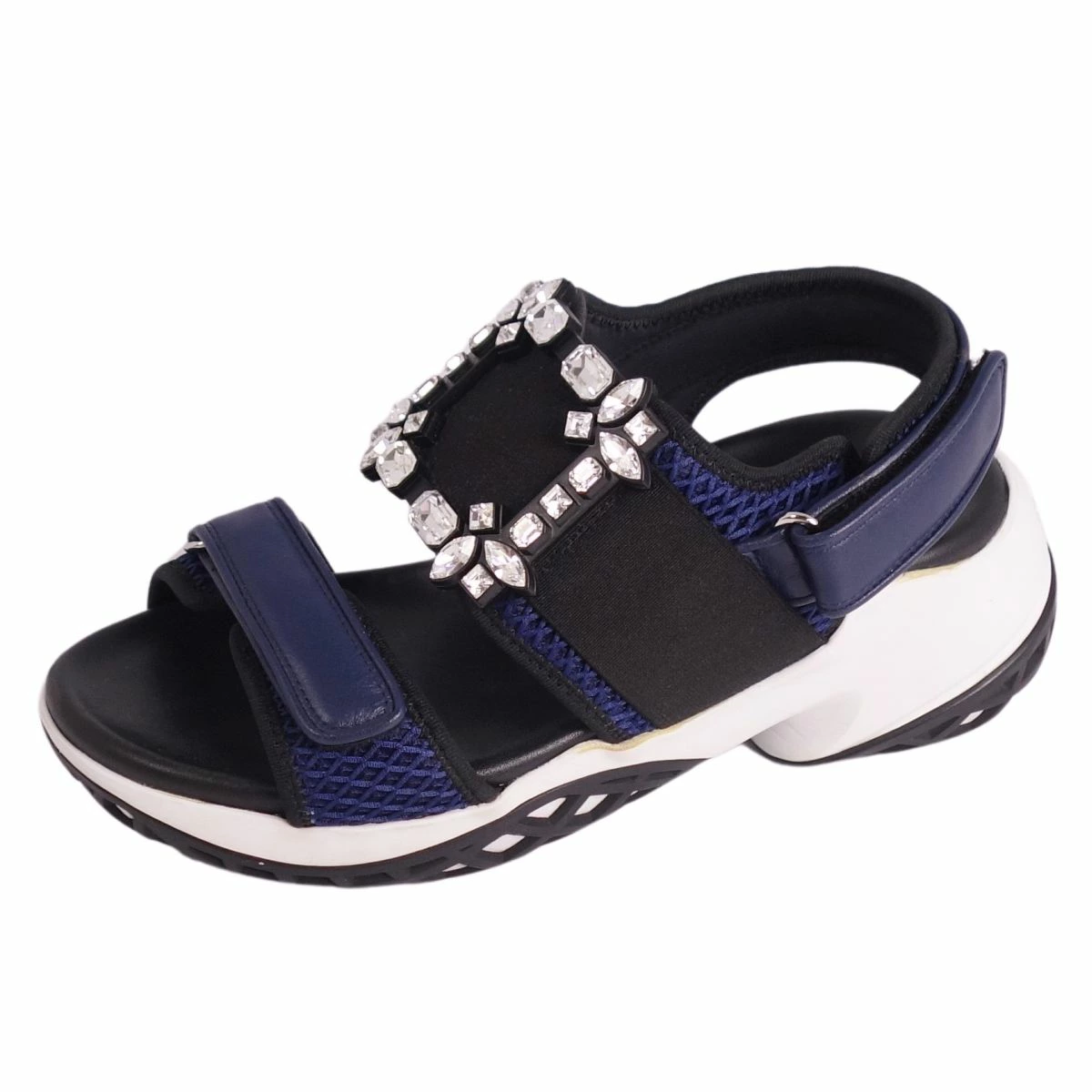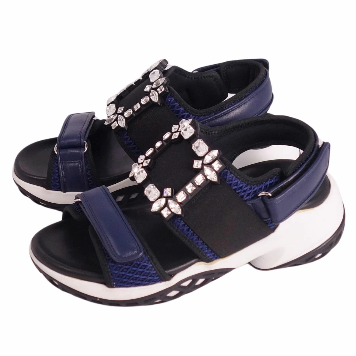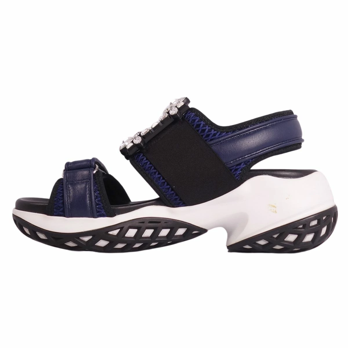 ■商品名ロジェヴィヴィエ Roger Vivier サンダル VIV RUN ヴィヴラン クリスタルバックル メッシュ シューズ レディース イタリア製 ネイビー サイズ38(25cm相当)■状態説明・「ベル ヴィヴィエ」のアイコニックなバックルが魅力的なRoger Vivierの「VIV RUN」サンダルです♪・活動的な女性たちのエレガンスを引き立てる「ヴィヴ ラン」にはクリスタルバックルがあしらわれ、デザインに妥協することなく、優れた機能性を備えています◎・イタリア製・ミッドソールに接着剤跡が御座いますが、ご使用に差し支えるようなものはなく全体的にキレイな状態です!【季節感:春夏】【付属品:箱/保存袋】■素材ネオプレン/ナッパレザー/メッシュ■カラーネイビー■表記サイズ38(25cm相当)■実寸サイズヒール:約5cm幅:約10cmインソール全長:約25.5cm■状態ランクAB 使用感があるが、傷や汚れの気にならない状態■店舗管理番号ce07on-rm20e32537womens_navy