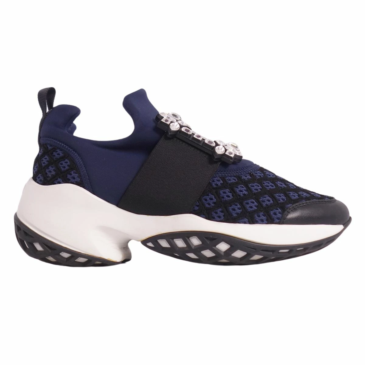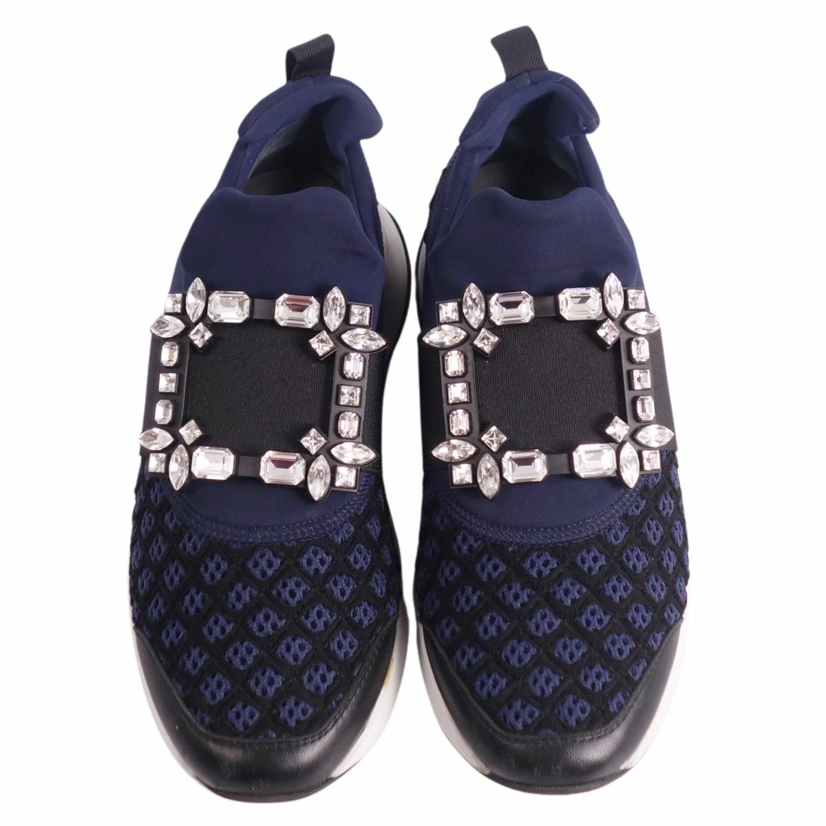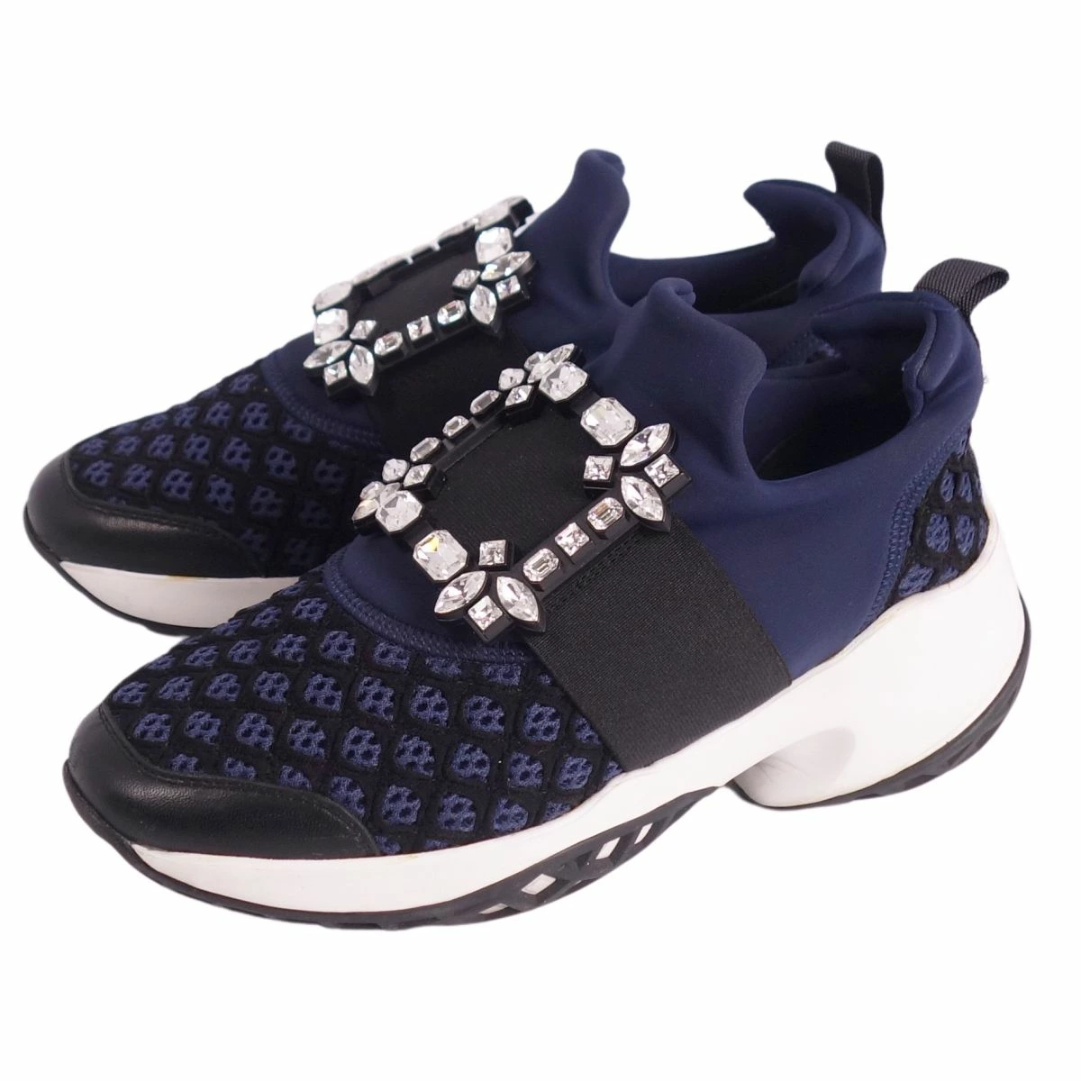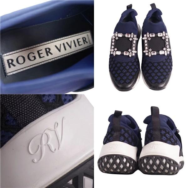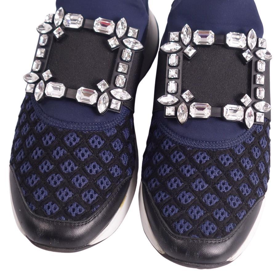 Pre-owned Roger Vivier VIV RUN crystal buckle slip-on sneakers, women's, made in Italy, size 36 (equivalent to 23cm), navy. Excellent condition.