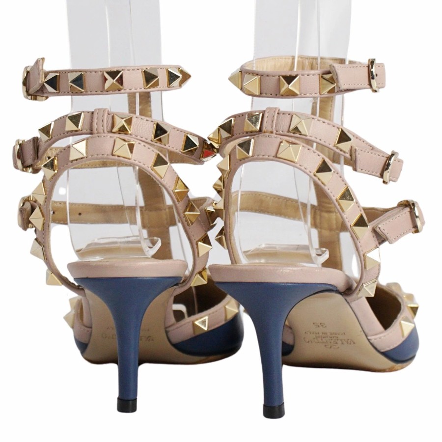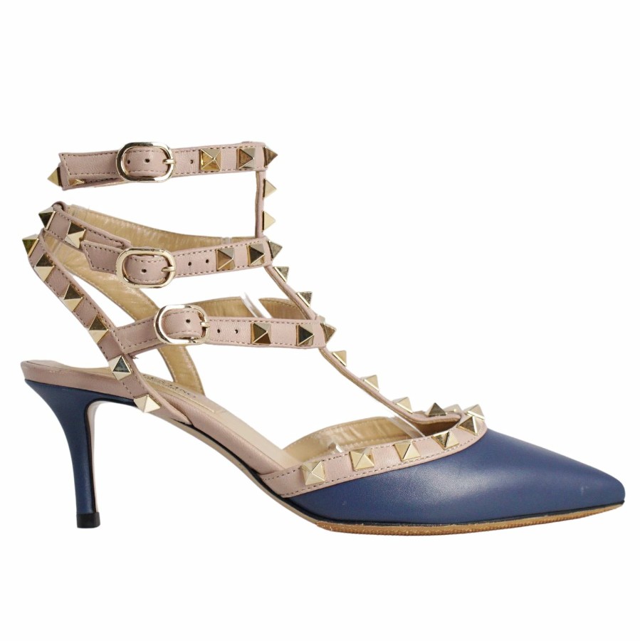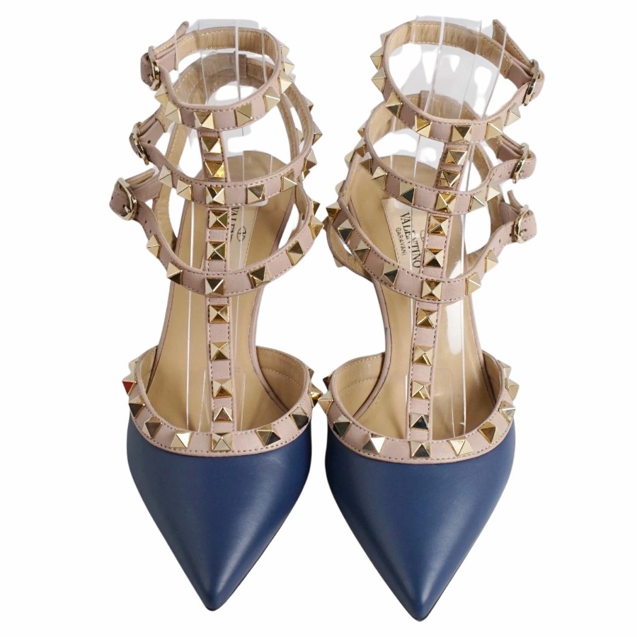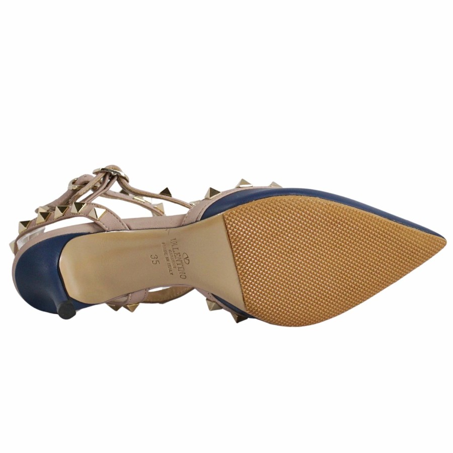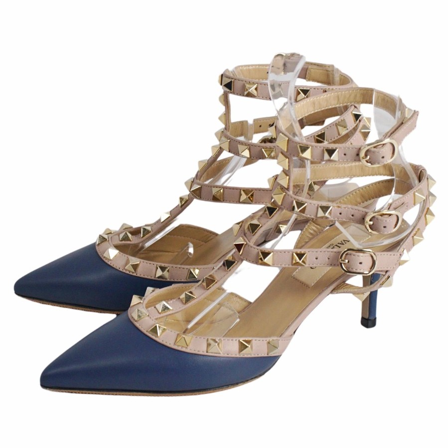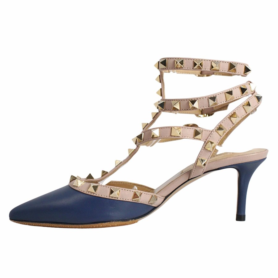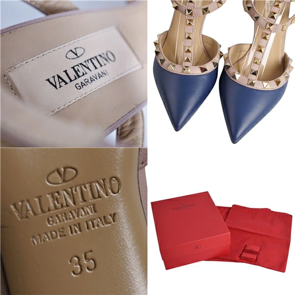 ヴァレンティノ ガラヴァーニ VALENTINO GARAVANI パンプス ストラップ スタッズ レザー ヒール シューズ 靴 レディース イタリア製 ネイビー サイズ35(22cm相当)