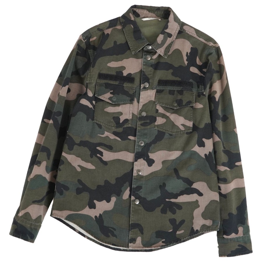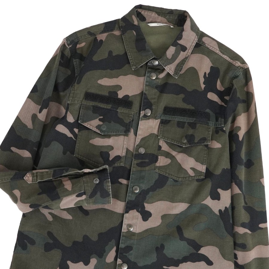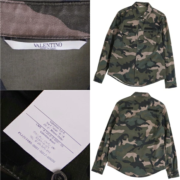 ヴァレンティノ VALENTINO シャツ ロングスリーブ 長袖 カモフラージュ 迷彩 ナイロン トップス メンズ イタリア製 グリーン サイズ46(S相当)