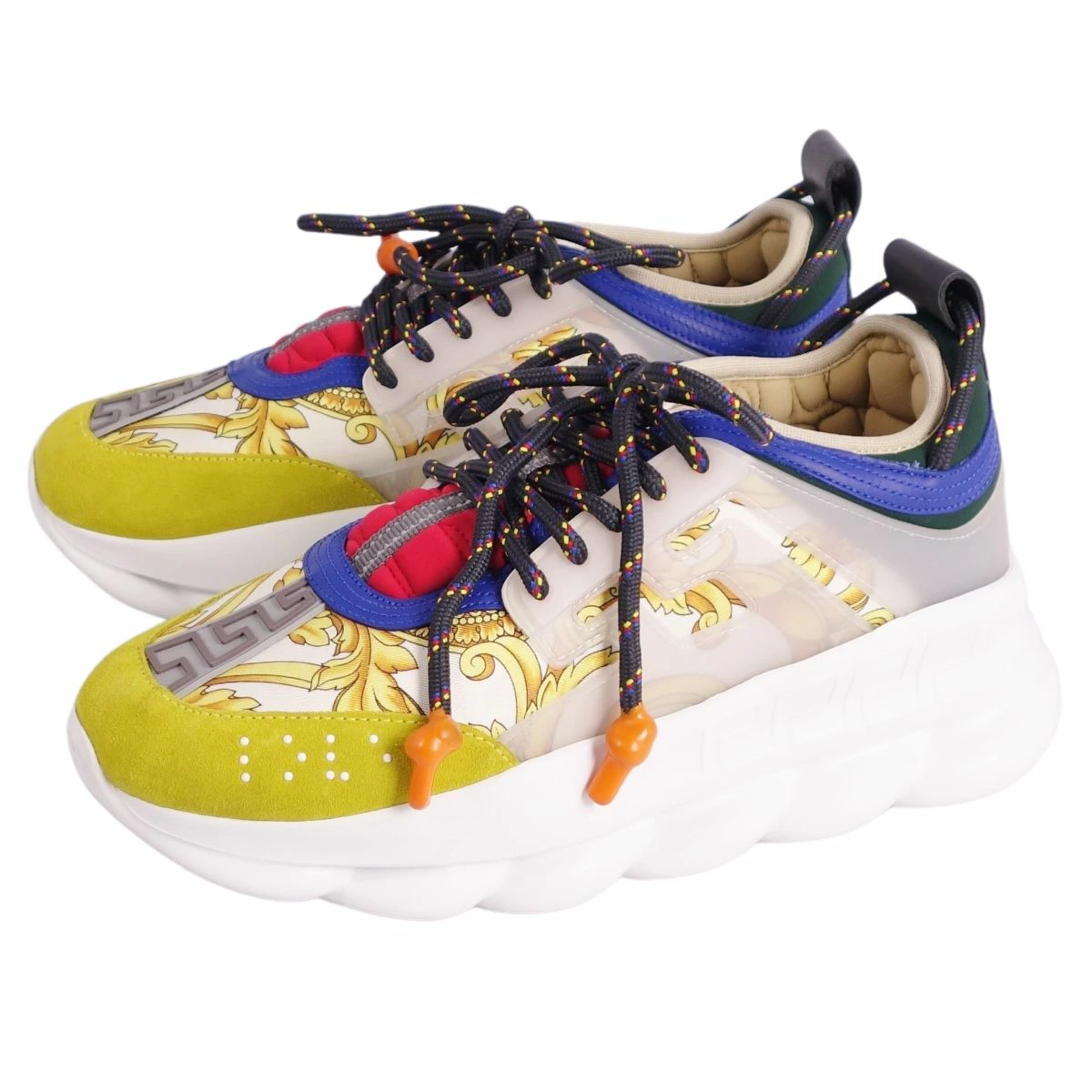■商品名ヴェルサーチ VERSACE スニーカー CHAIN REACTION バロック柄 ファブリック シューズ 靴 メンズ イタリア製 マルチカラー サイズ40(26cm相当)■状態説明・ファブリック素材を使用した、VERSACE「CHAIN REACTION」スニーカーです♪・鮮やかなカラーリングにアイコニックなバロックデザインが目を引く一品で◎・イタリア製・USEDですが気になるようなキズや汚れなどはなく全体的にキレイな状態です!【季節感:オールシーズン】【付属品:なし】■素材ファブリック/スウェードレザー■カラーマルチカラー■表記サイズ40(26cm相当)■実寸サイズアウトソール:約31cm幅:約11cm■状態ランクA 使用感の少ない全体的にキレイなUSED品■店舗管理番号ce06om-rm20e31783mens_multi