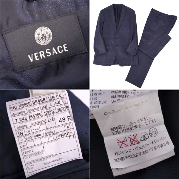 ヴェルサーチ VERSACE セットアップ スーツ シングル リネン ジャケット パンツメンズ イタリア製 ネイビー サイズ48(M相当)