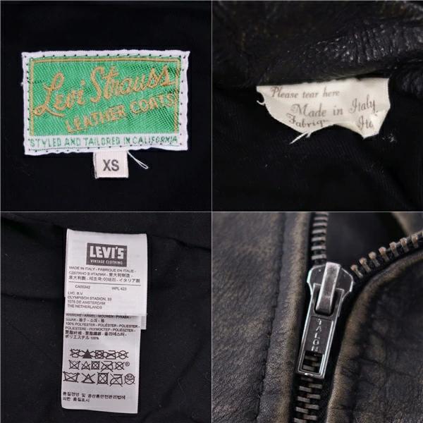 ■商品名リーバイス Levi's ジャケット レザージャケット ダブルライダース ヴィンテージ加工 牛革 アウター メンズ ブラック サイズXS■状態説明・上質なレザーを贅沢に使用した、LEVI'S VINTAGE CLOTHINGのダブルライダースジャケットです♪・ヴィンテージ加工が魅力的な一着です◎・イタリア製・国内正規取扱品です。・USEDですが気になるような傷や汚れなどはなく全体的にキレイな状態です!【季節感:秋冬春】【付属品:なし】■素材表地:牛革 胴裏:コットン100% 袖裏:ポリエステル100%■カラーブラック■表記サイズXS■実寸サイズ着丈:約53cm身幅:約42cm肩幅:約37cm袖丈:約58cm■状態ランクA 使用感の少ない全体的にキレイなUSED品■店舗管理番号cf04oe-rm05f09739mens_black mens_xs