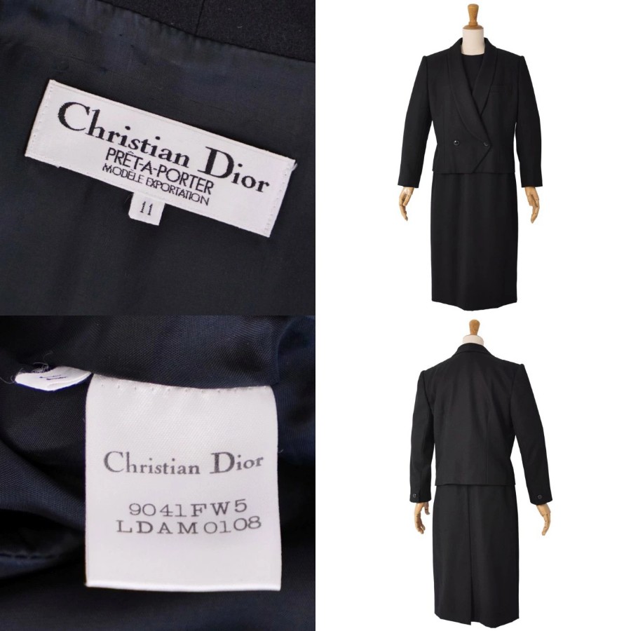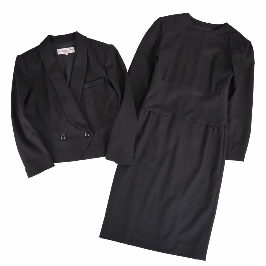 Vintage クリスチャンディオール Christian Dior セットアップ ワンピーススーツ ウール ジャケット ワンピース レディース ブラック サイズ11(L相当)