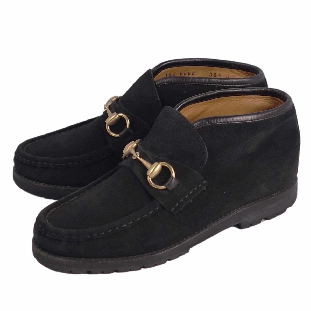 ■商品名Vintage グッチ GUCCI ブーツ チャッカブーツ ホースビット スウェードレザー シューズ 靴 レディース イタリア製 ブラック サイズ35.5(22.5cm相当)■状態説明・希少なVintage GUCCI。上質なスウェードレザーを贅沢に使用した、チャッカブーツです♪・ブラックのカラーリングにアイコニックなホースビットデザインが目を引く一品です◎・イタリア製・スウェードレザー特有のスレが御座いますが、ご使用に差し支えるようなものはなく全体的にキレイな状態です!【季節感:秋冬】【付属品:なし】■素材スウェードレザー■カラーブラック■表記サイズ35.5(22.5cm相当)■実寸サイズアウトソール:約24cm幅:約9cmヒール:約2cm筒高さ:約8cm■状態ランクAB 使用感があるが、傷や汚れの気にならない状態■店舗管理番号ce09dm-rm10e33646womens_black