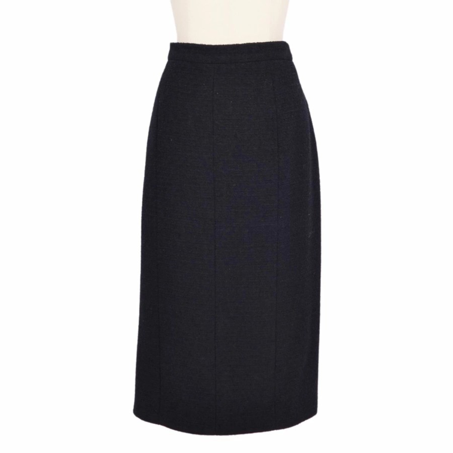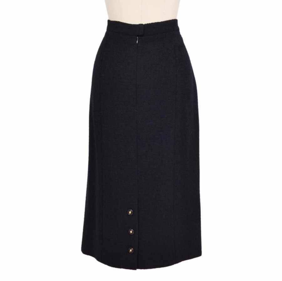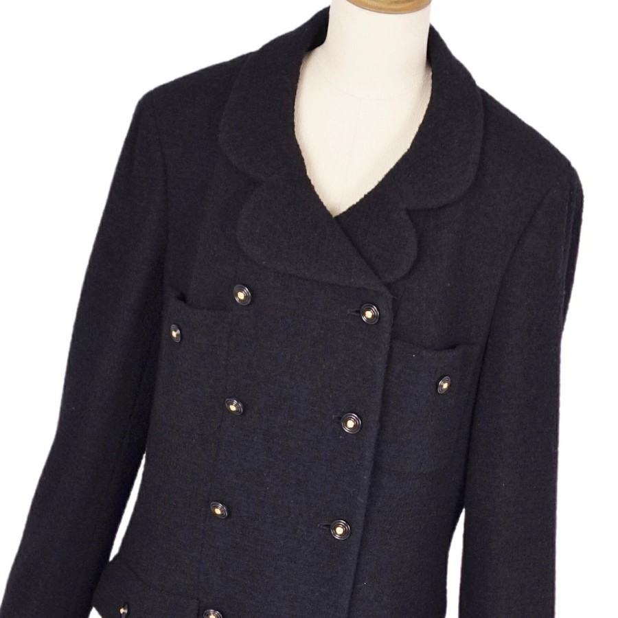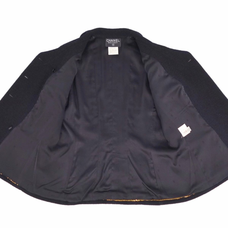 [Excellent Condition] Vintage Chanel 95A Suit Set (Jacket & Skirt) with Coco Mark Buttons, Made in France, Women's Size 46 (Equivalent to XL), Black [Pre-owned]