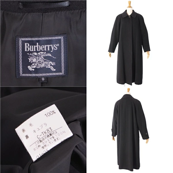 Vintage バーバリー Burberrys コート ステンカラーコート バルマカーンコート カシミヤ アウター レディース ブラック サイズ9(M相当)