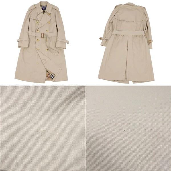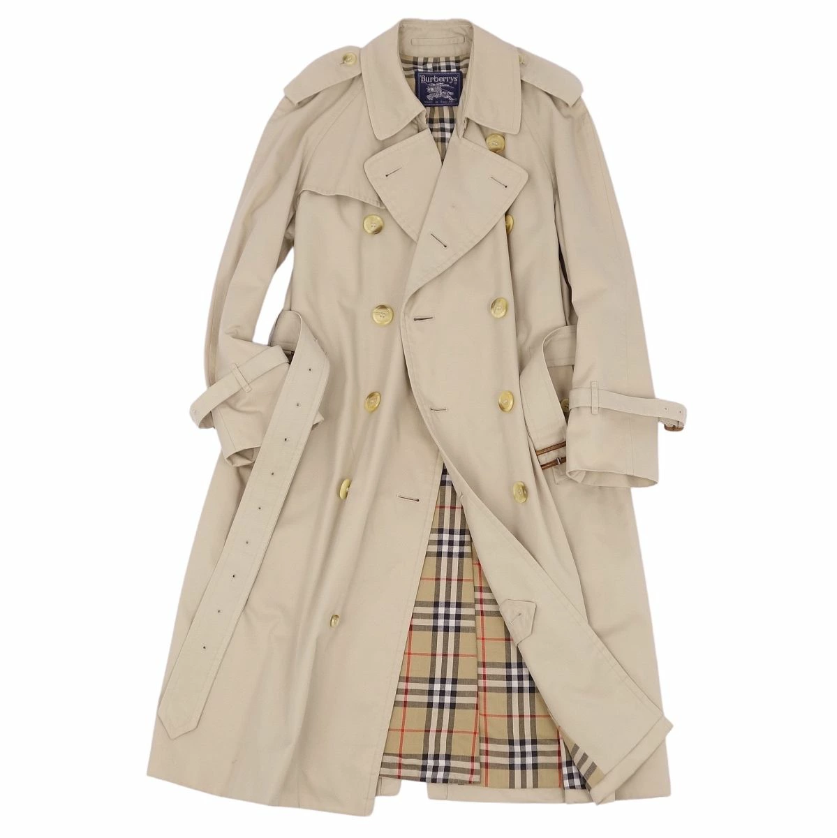 ■商品名Vintage バーバリー Burberrys コート 英国製 トレンチコート 裏チェック コットン アウター メンズ ベージュ サイズ46(S相当)■状態説明・希少かつ絶大な人気を誇る1980年代頃のVintage Burberrys、クラシカルで美しいシルエットが魅力的なトレンチコートです♪・表地はコットンギャバジン、裏地はアイコニックなチェックデザイン、肩パット無しで美しいショルダーラインをお楽しみいただけます◎・イングランド製・フロントの裾に汚れが御座いますが、ご使用に差し支えるようなものはなく全体的にキレイな状態です!【季節感:秋冬】【付属品:なし】■素材表地:コットン51% ポリエステル49% 裏地:コットン■カラーベージュ■表記サイズ46(S相当)■実寸サイズ着丈:約108cm身幅:約56cmゆき丈:約81cm袖丈(脇下から):約40cm肩幅(エポレット~エポレット):約47cm■状態ランクAB 使用感があるが、傷や汚れの気にならない状態■店舗管理番号cg01on-rm05c13298mens_beige mens_s