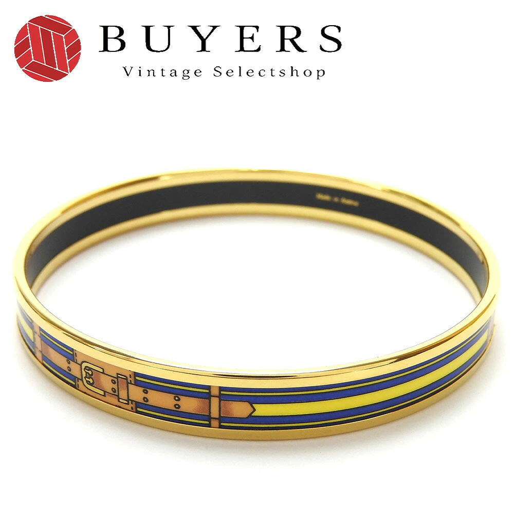 | 品名 | 【中古】エルメス バングル ブレスレット エマイユ アクセサリー 小物 ベルト柄 七宝焼き ゴールド ブルー イエロー メッキ レディース 女性 hermes bangle accessories gold |