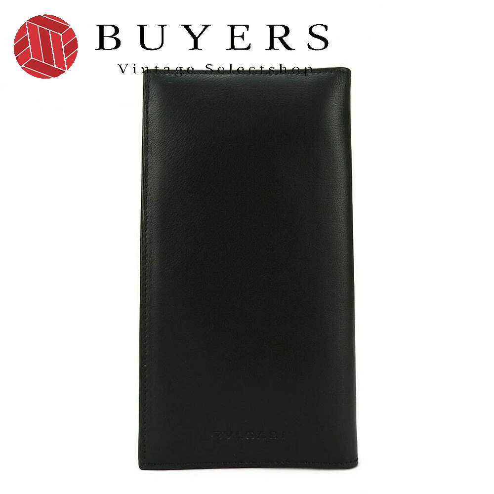 品名【中古】ブルガリ 二つ折り 長札入れ ロングウォレット ブラック 黒 レザー 革 メンズ 男性 財布 小銭入れ無し BVLGARI long wallet black leather