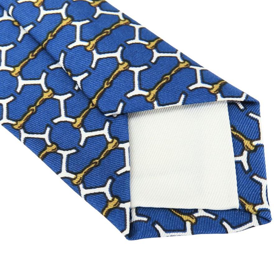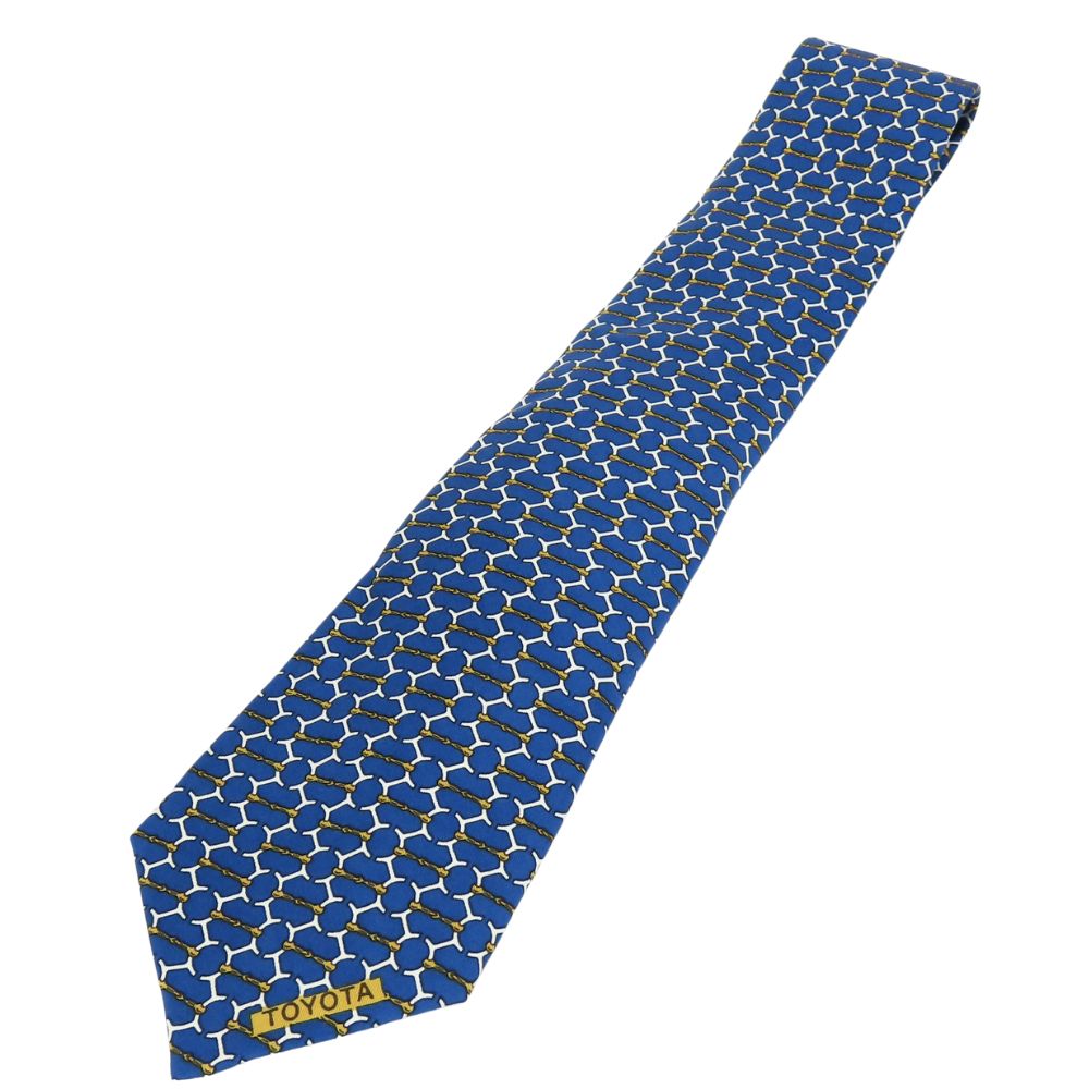 品名【中古】 エルメス ネクタイ トヨタ限定品 シルク ブルー系 ゴールド ホワイト ビジネス 紳士 スーツ メンズ 男性 HERMES
