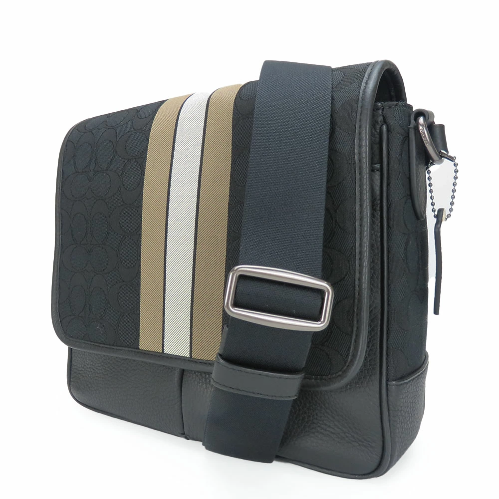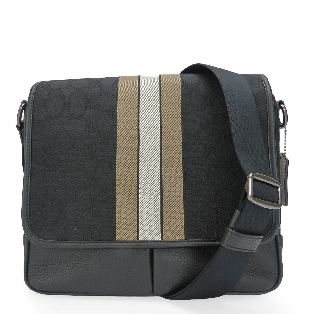 | 品名 | 【中古】 コーチ ショルダーバッグ C6583 シグネチャー キャンバス レザー ブラック 斜め掛け ストライプ おしゃれ メンズ 男性 COACH |