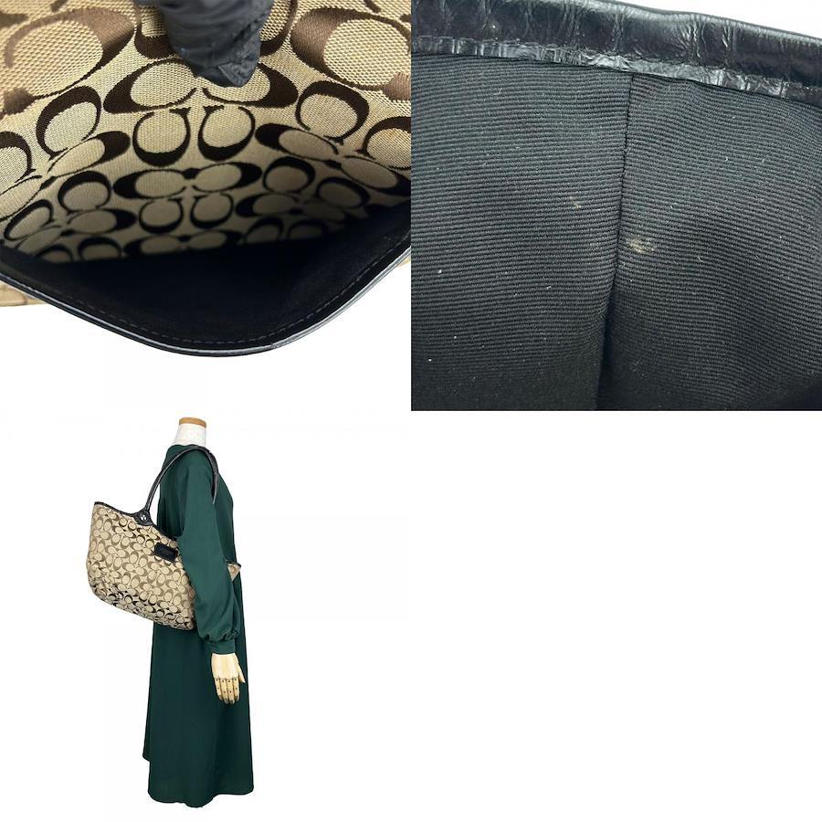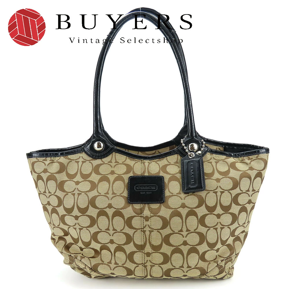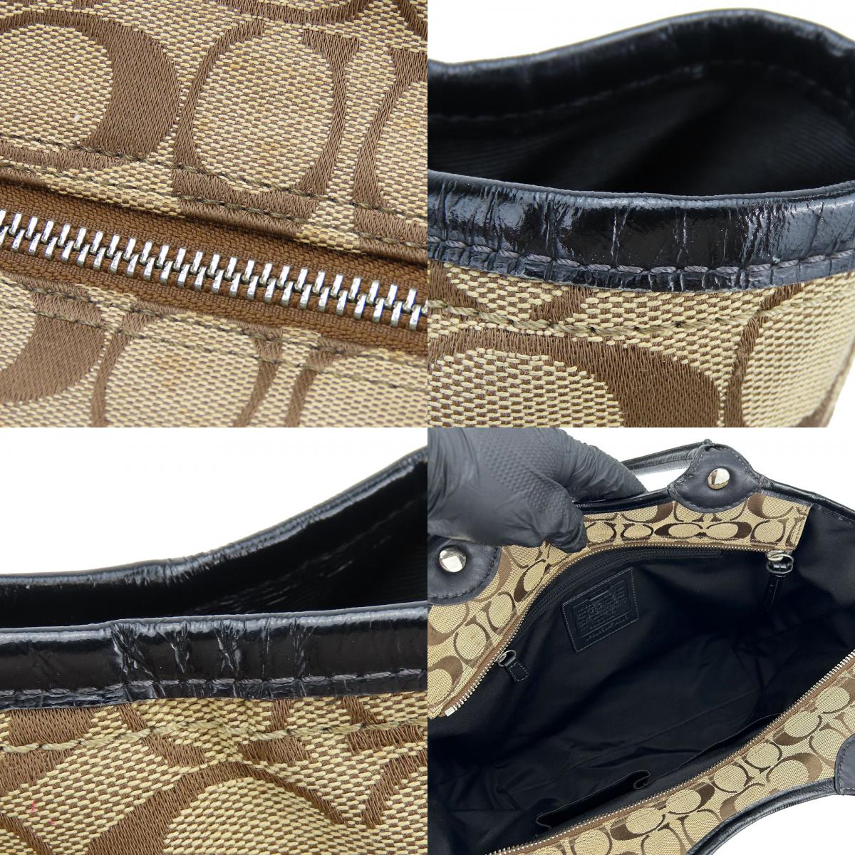 品名【中古】 コーチ トートバッグ F14385 シグネチャー キャンバス パテントレザー ベージュ ブラック シルバー金具 肩掛け レディース 女性 COACH