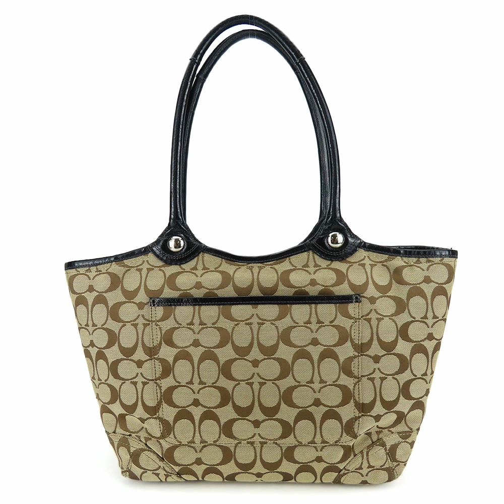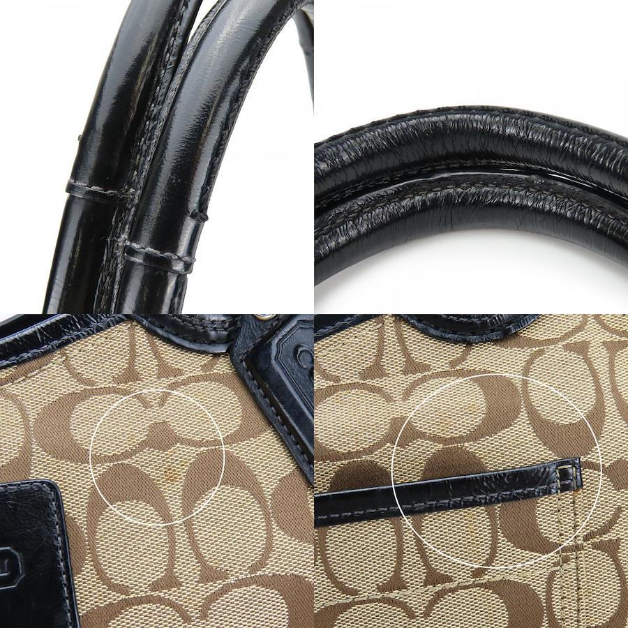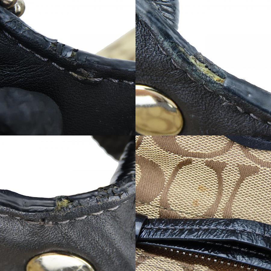 [10% OFF!! Rakuten Super Sale!!] [Pre-owned] Coach Tote Bag F14385 Signature Canvas Patent Leather Beige Black with Silver Hardware, Shoulder Bag, Women's COACH