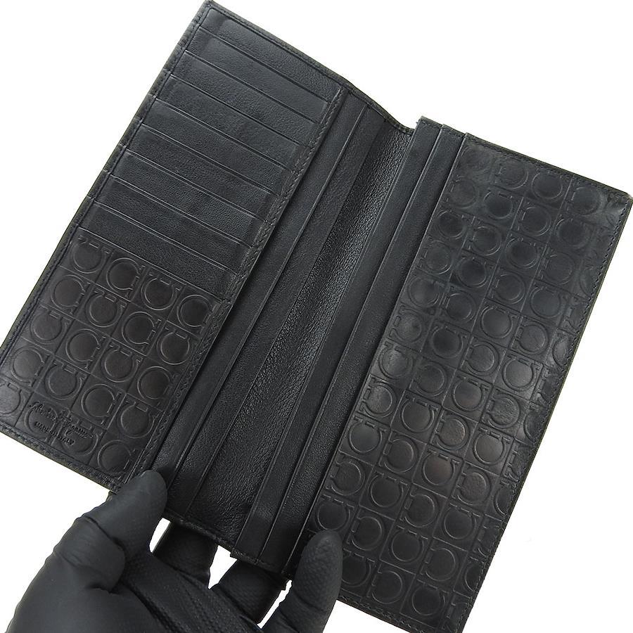 品名【中古】 サルヴァトーレフェラガモ 長財布 ガンチーニ PVC グレー ブラック シンプル スマート 小物 普段使い メンズ 男性 Salvatore Ferragamo