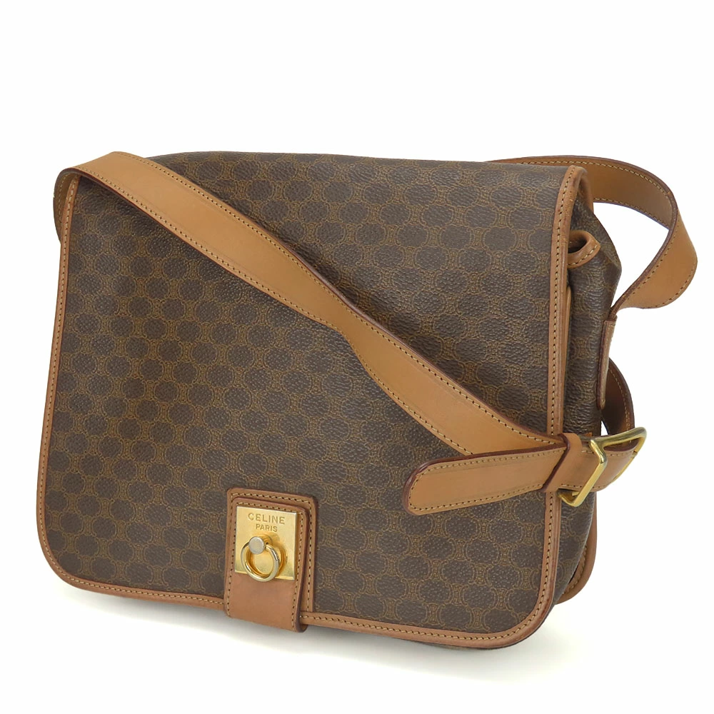 | 品名 | 【中古】 セリーヌ ショルダーバッグ マカダム レザー PVC ブラウン ゴールド金具 肩掛け 斜め掛け レディース 女性 CELINE |