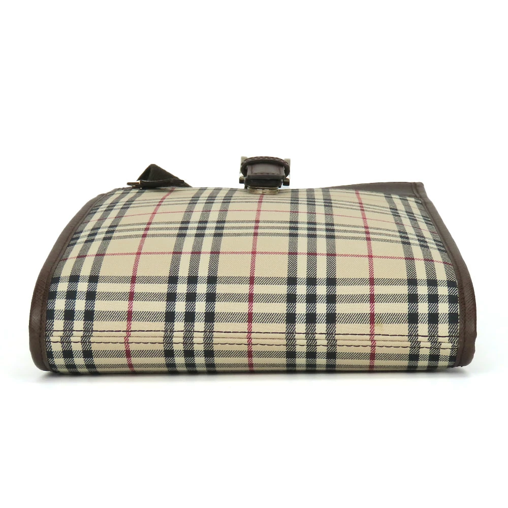 品名【中古】 バーバリー ショルダーバッグ キャンバス レザー ベージュ ブラウン シルバー金具 斜め掛け ノバチェック おしゃれ レディース 女性 BURBERRY