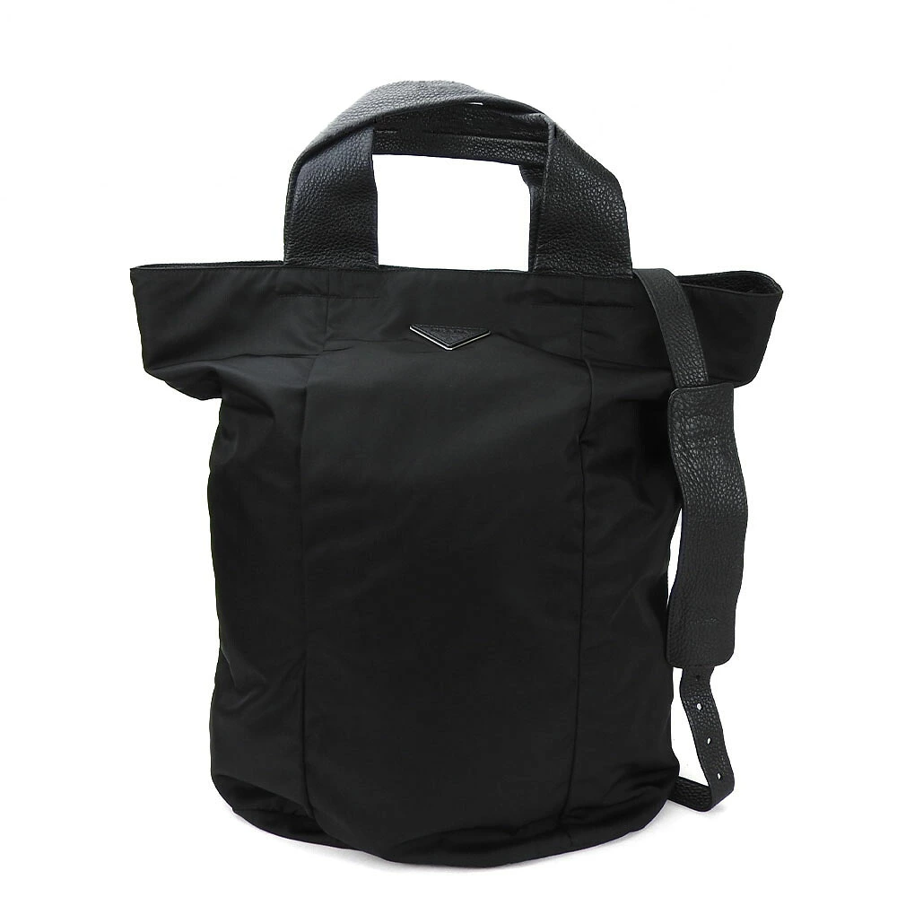 [10% OFF!! Rakuten Super Sale!!] [Pre-owned] Prada 2-Way Tote/Shoulder Bag, Large, Crossbody, Nylon, Black, Leather, Everyday Wear, Women's, PRADA Tote Shoulder Bag, Leather, NERO Black