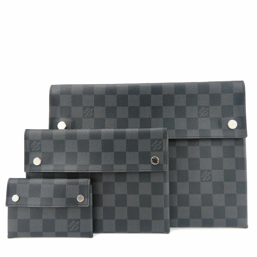 | 品名 | 【中古】 ルイ・ヴィトン セカンドバッグ アルファ・トリプルポーチ N60255 ダミエグラフィット グレー ブラック シルバー金具 クラッチバッグ LOUIS VUITTON |