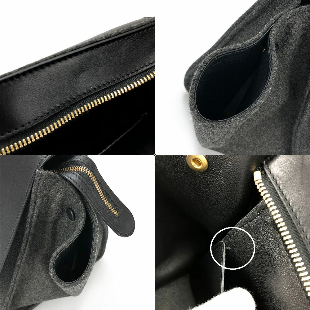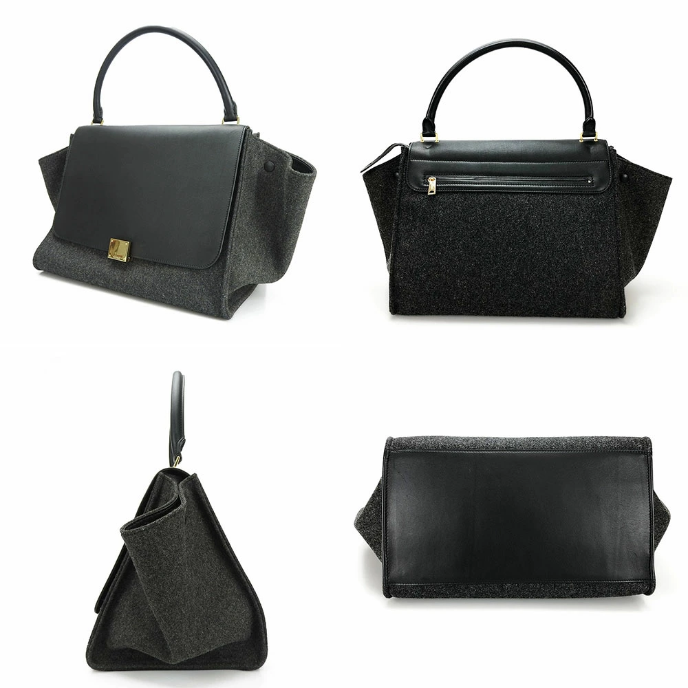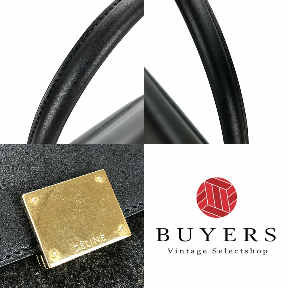 品名【中古】CELINE セリーヌ トラペーズ ハンドバッグ ショルダー レザー 革 ウール ゴールド金具 ブラック 黒 グレー 灰色 Hand Bag