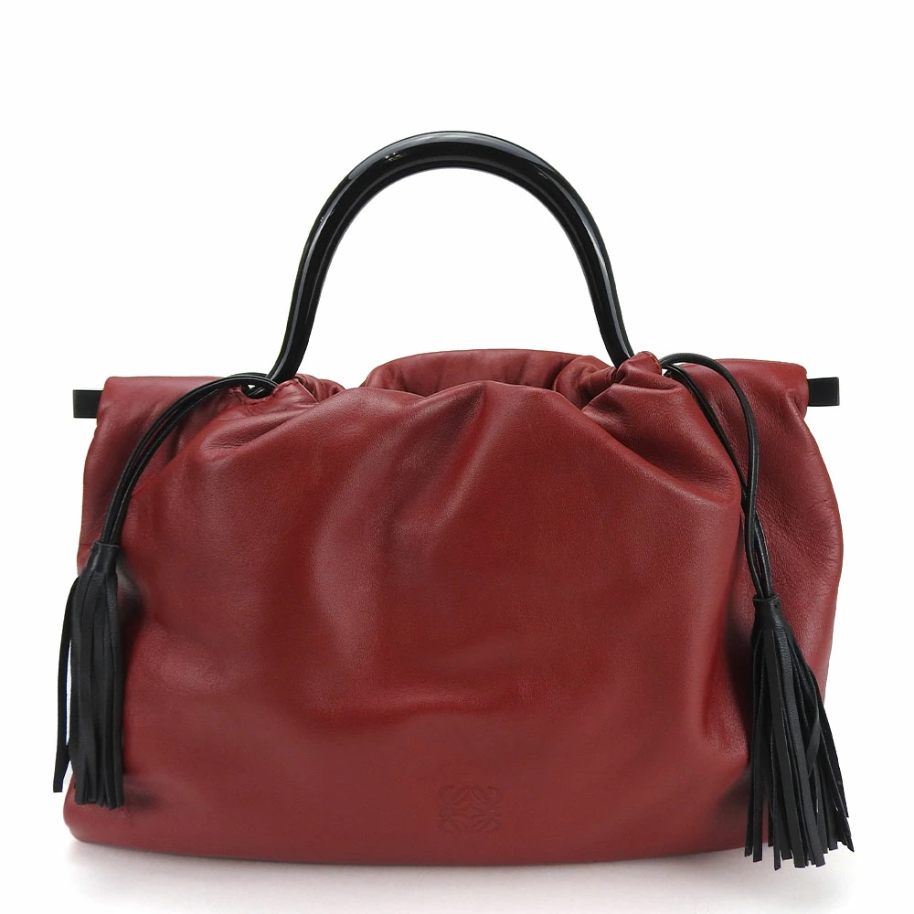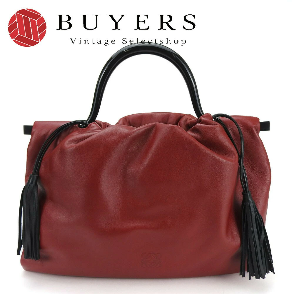 | 品名 | 【中古】ロエベ ハンドバッグ ナッパレザー アナグラム 革 巾着 フリンジ レッド ブラック 赤 黒 シック 女性 レディース LOEWE hand bag leather red black |