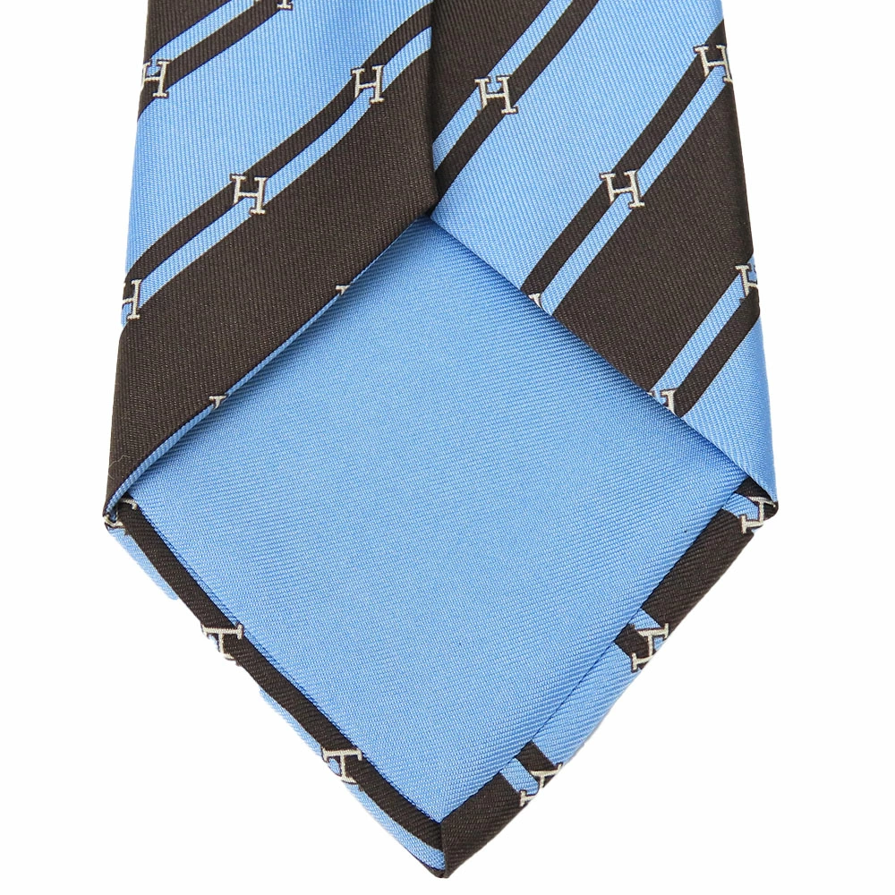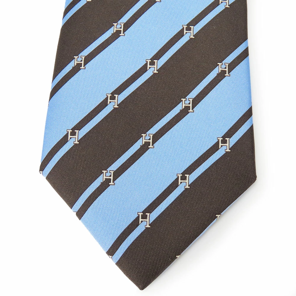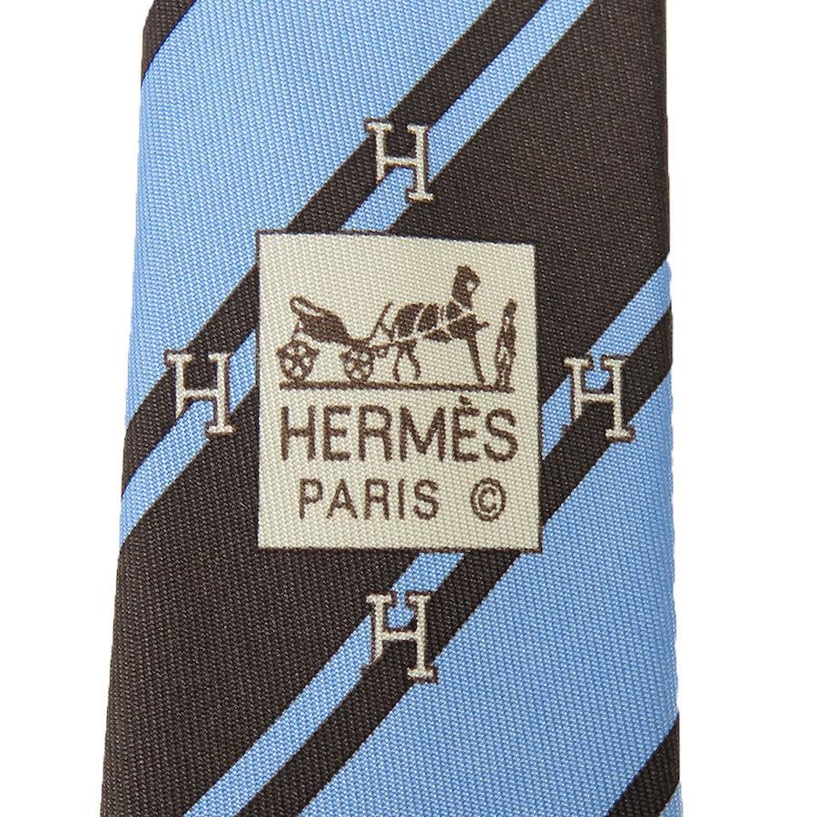 | 品名 | 【中古】 エルメス ネクタイ Hロゴ シルク ブルー系 ダークブラウン レジメンタル スーツ ビジネス メンズ 男性 HERMES |