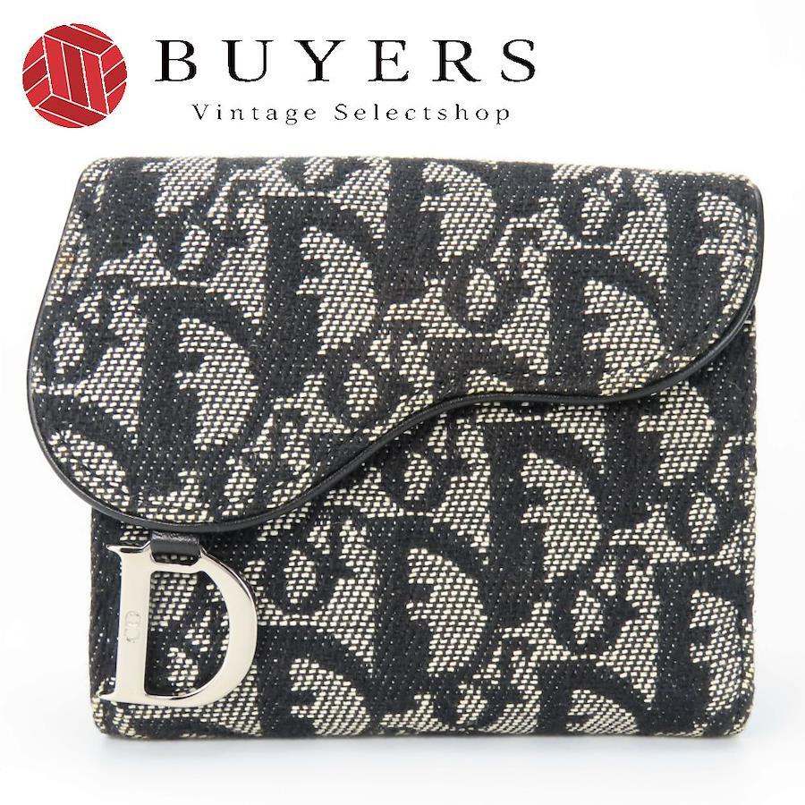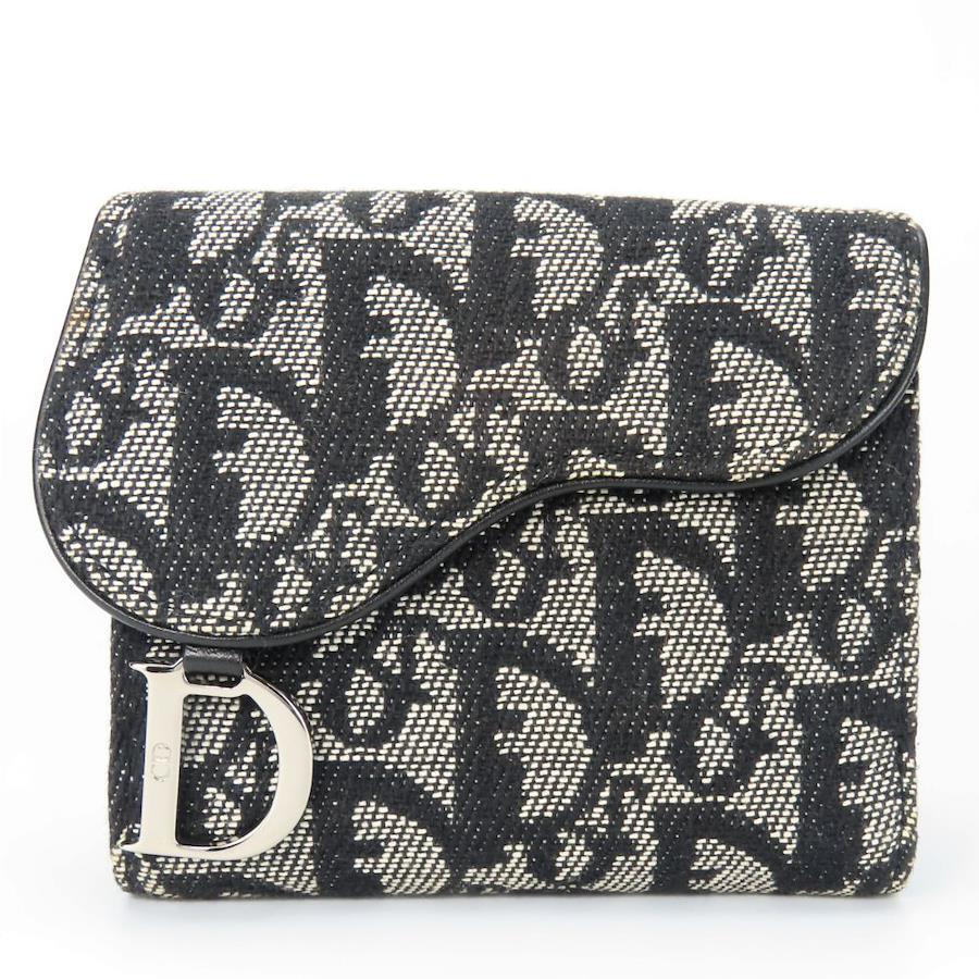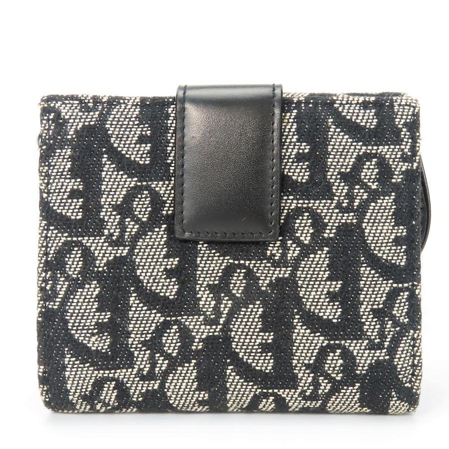 [10% OFF!! Rakuten Fashion THE SALE!!] [Pre-owned] Christian Dior Trotter Canvas Bi-fold Wallet, Black, Silver Hardware, Double Hook Closure, Compact, Women's, Christian Dior