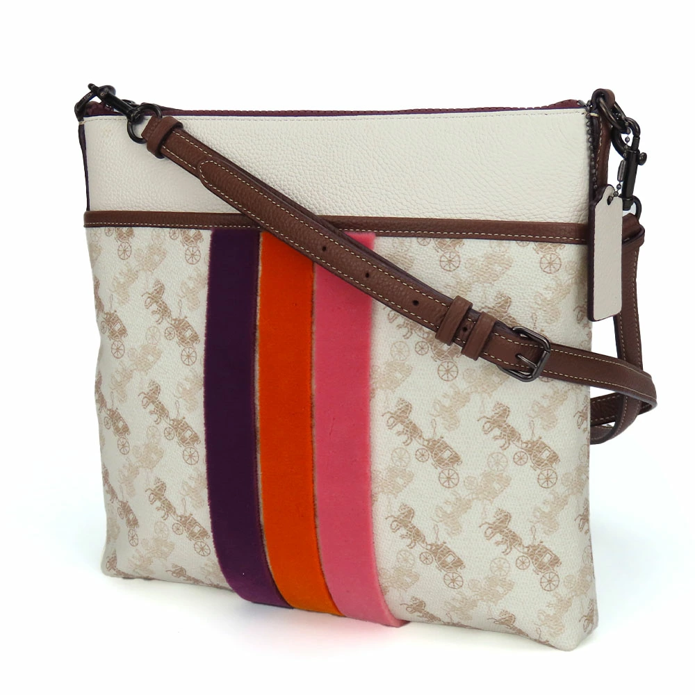 | 品名 | 【中古】 コーチ ショルダーバッグ 89608 ホース アンド キャリッジ PVC レザー ホワイト ブラウン シルバー金具 斜め掛け おしゃれ レディース 女性 COACH |