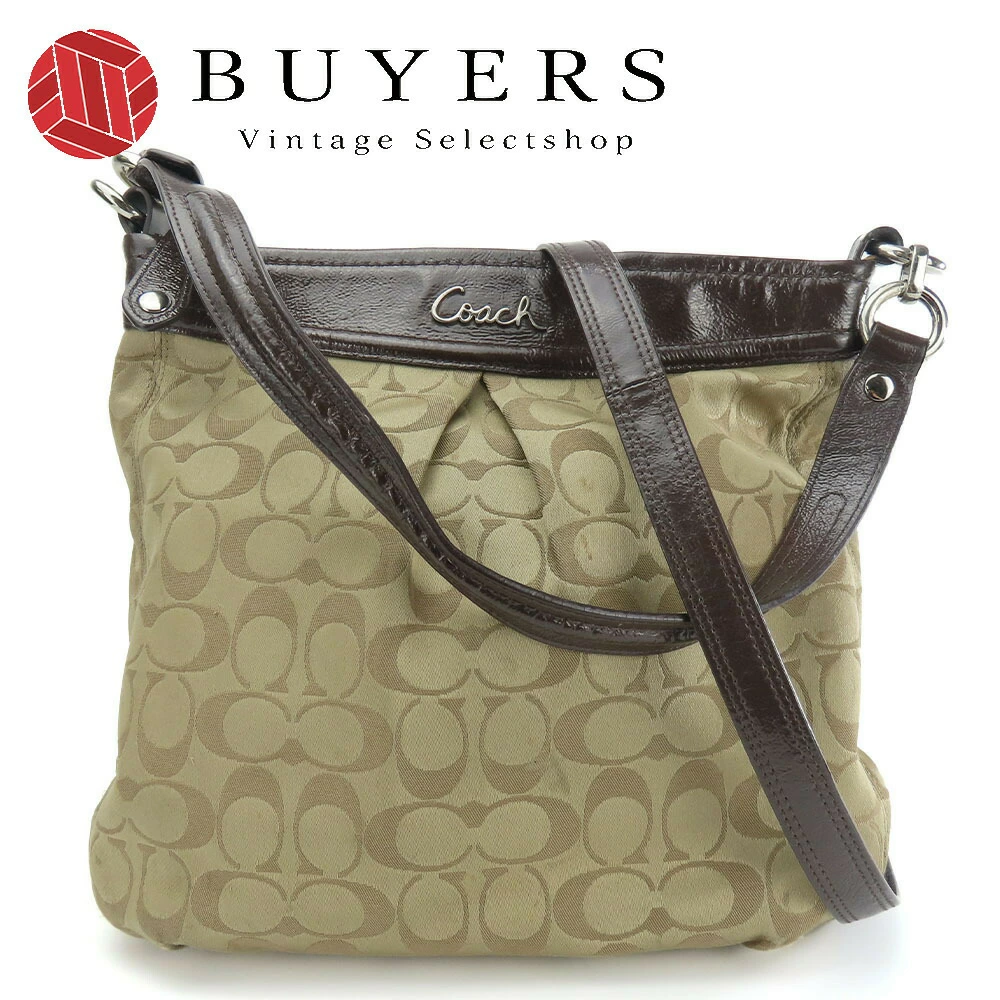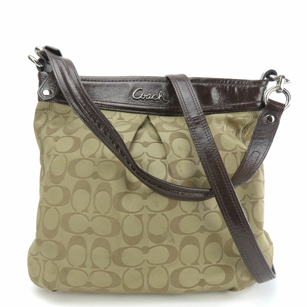 | 品名 | 【中古】 コーチ ショルダーバッグ F20111 シグネチャー キャンバス パテントレザー ダークブラウン ベージュ シルバー金具 2WAY 斜め掛け カジュアル レディース 女性 COACH |