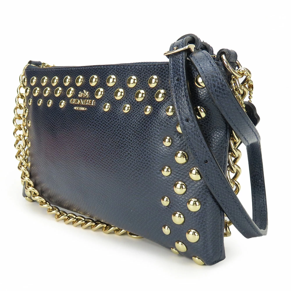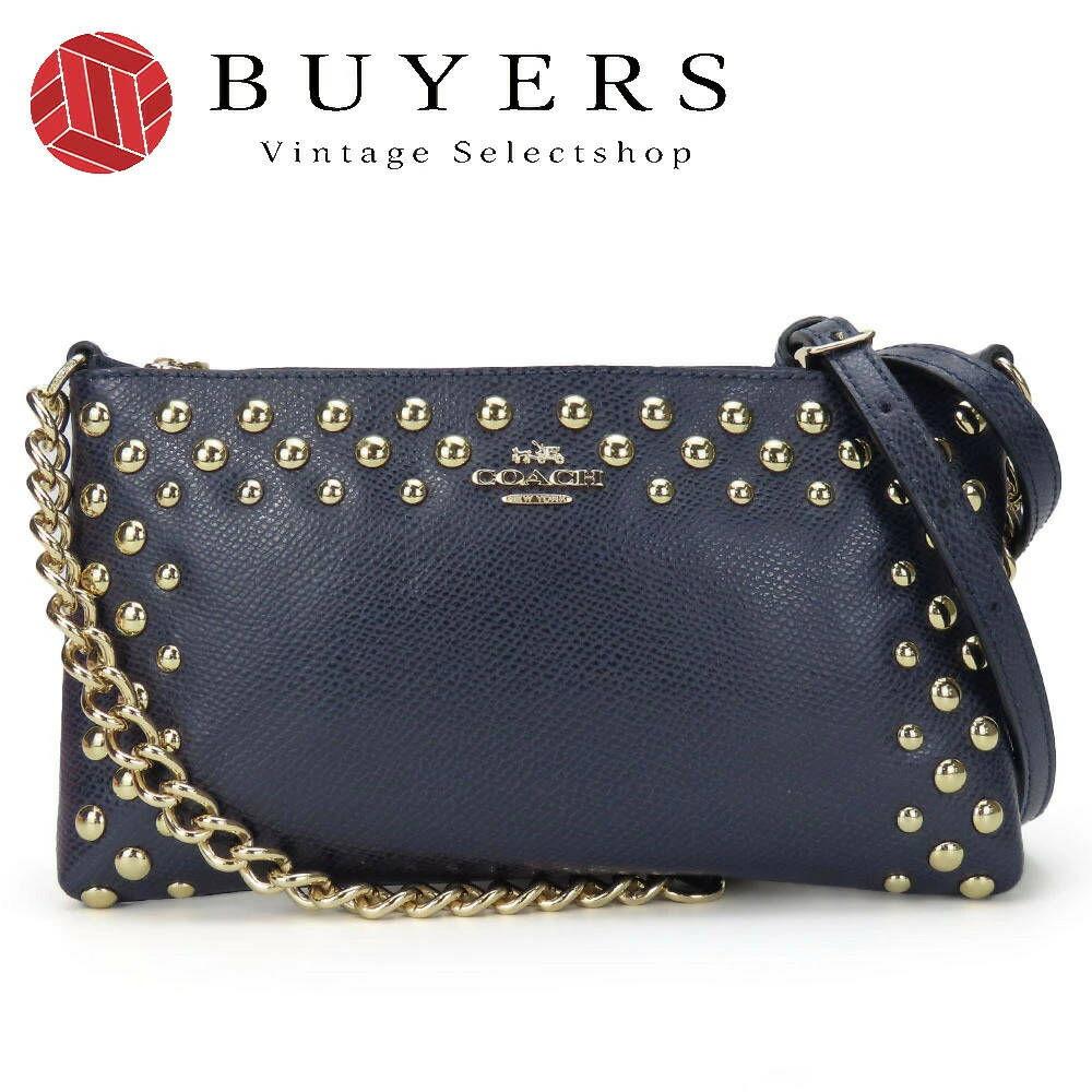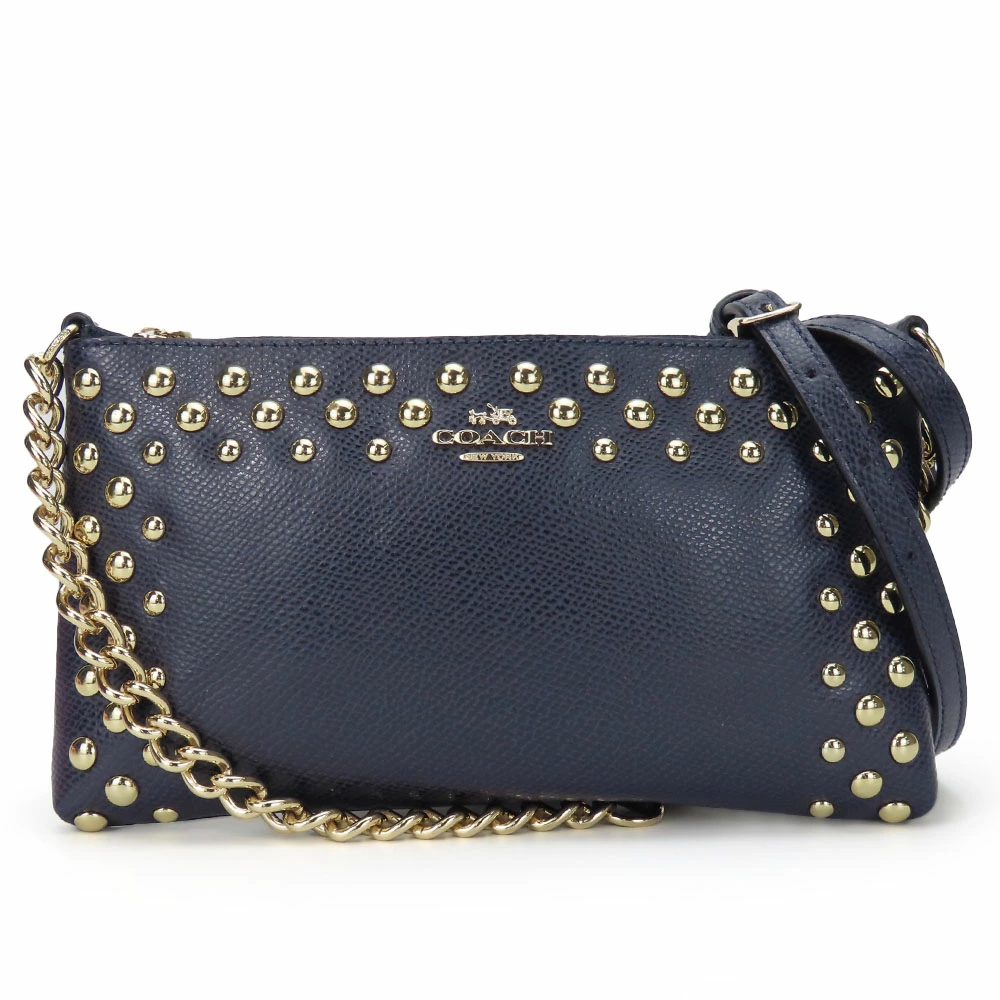 | 品名 | 【中古】 コーチ ショルダーバッグ F53140 スタッズ レザー ネイビー ゴールド金具 チェーン 斜め掛け ポシェット レディース 女性 COACH |