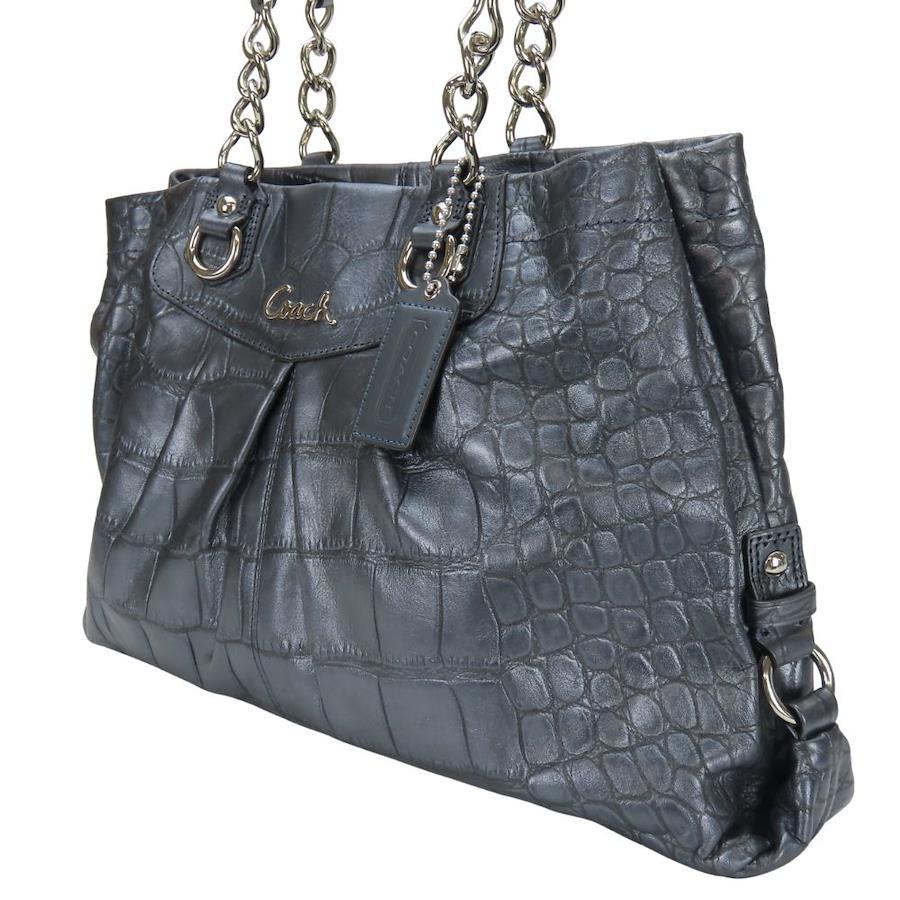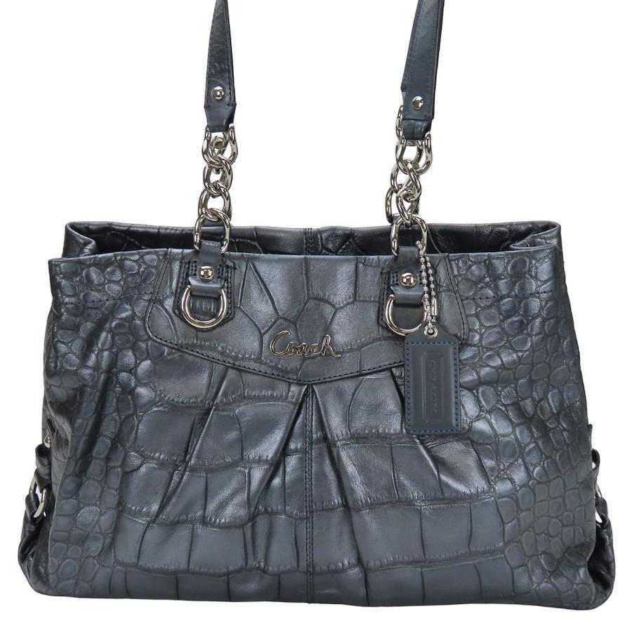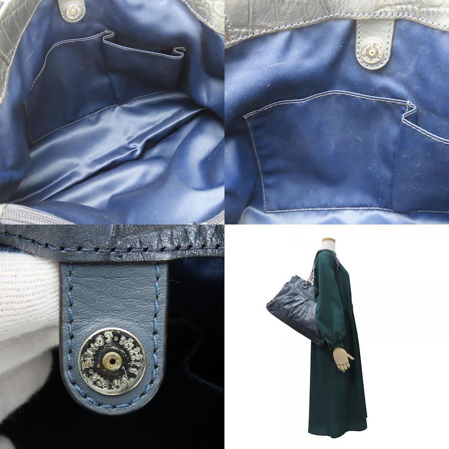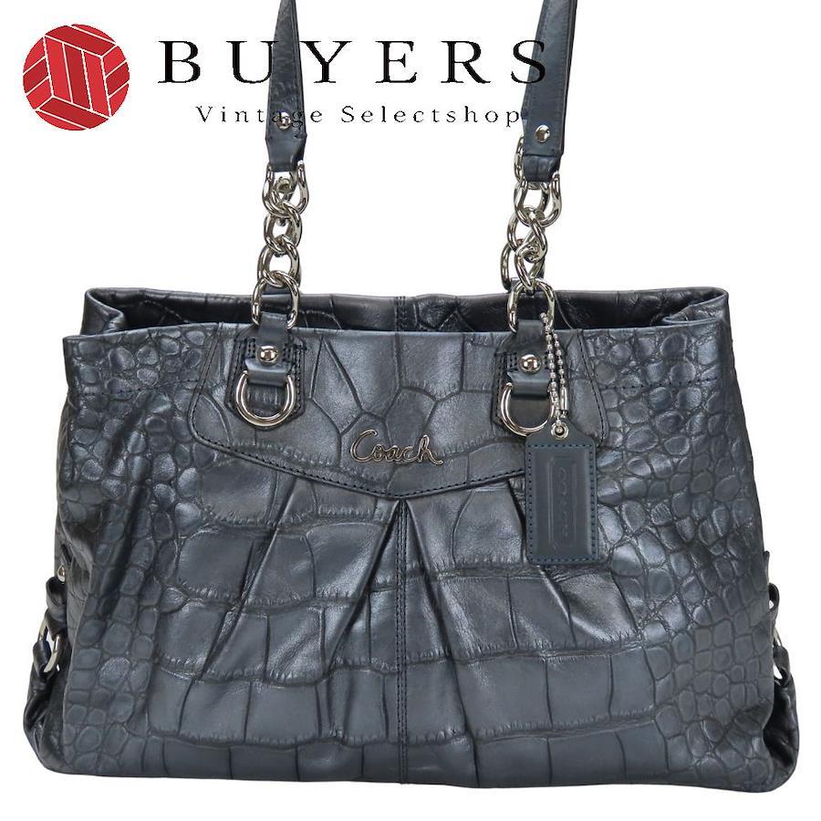 | 品名 | 【中古】 コーチ トートバッグ F17661 レザー ネイビーグレー系 メタリック シルバー金具 クロコ型押し 肩掛け レディース 女性 COACH |