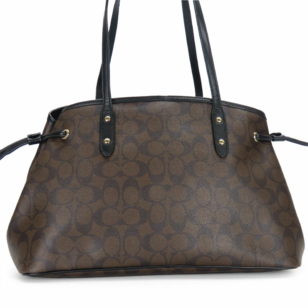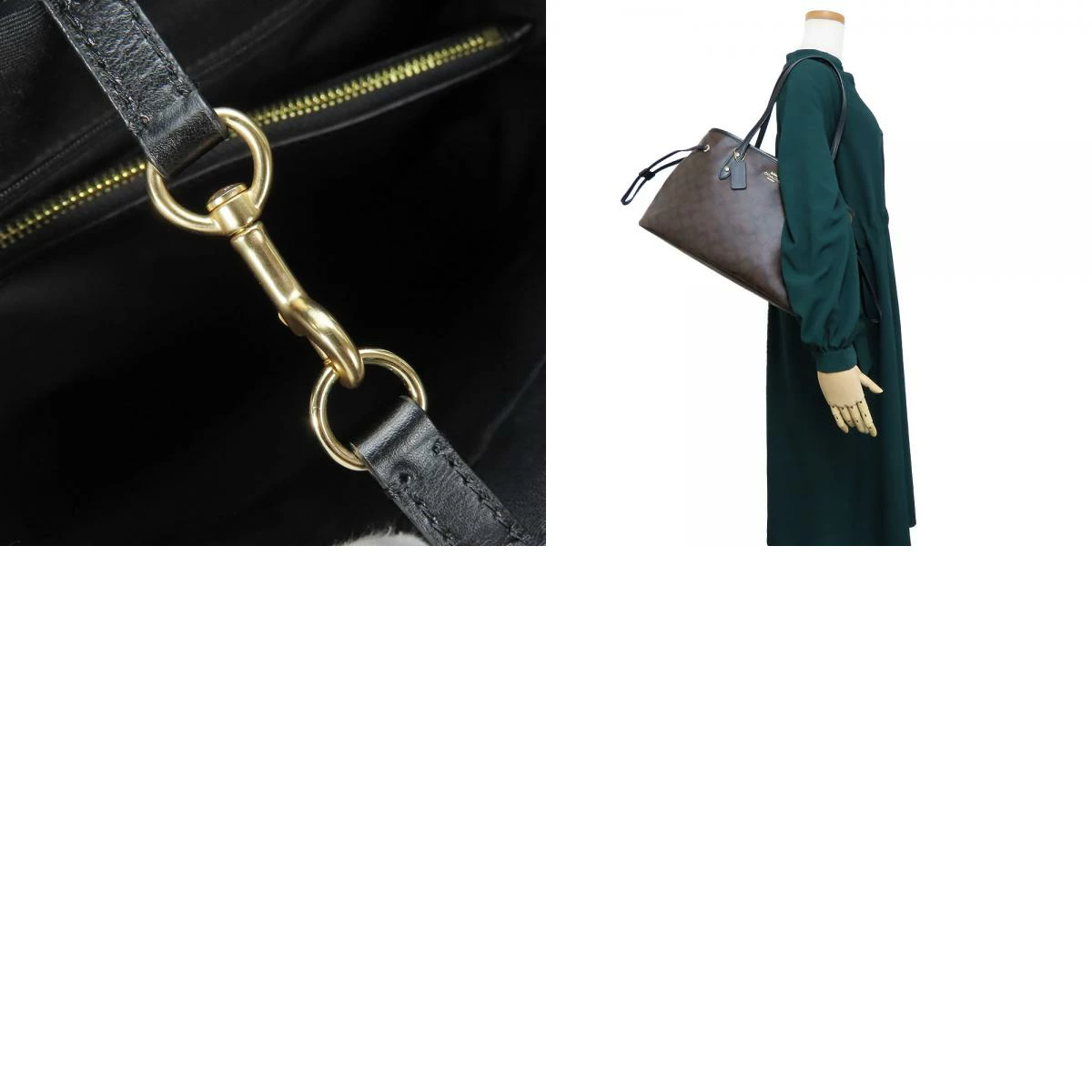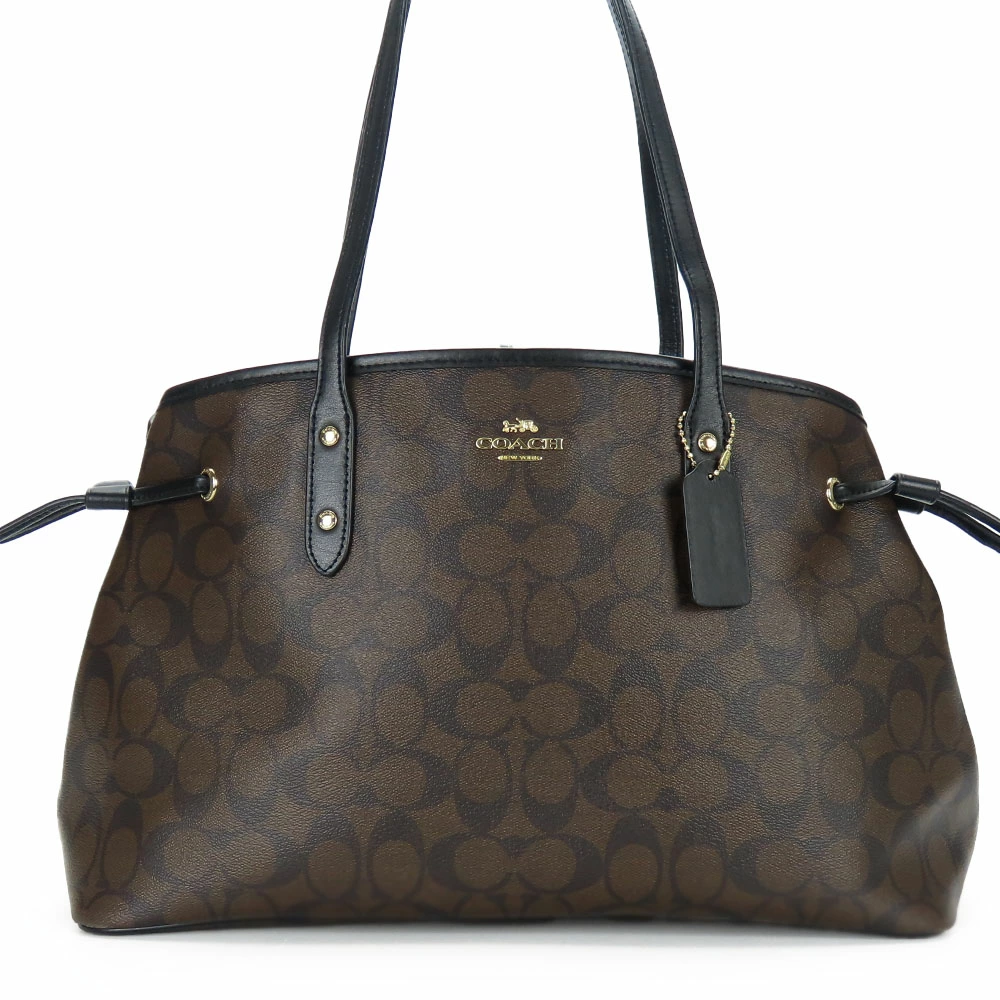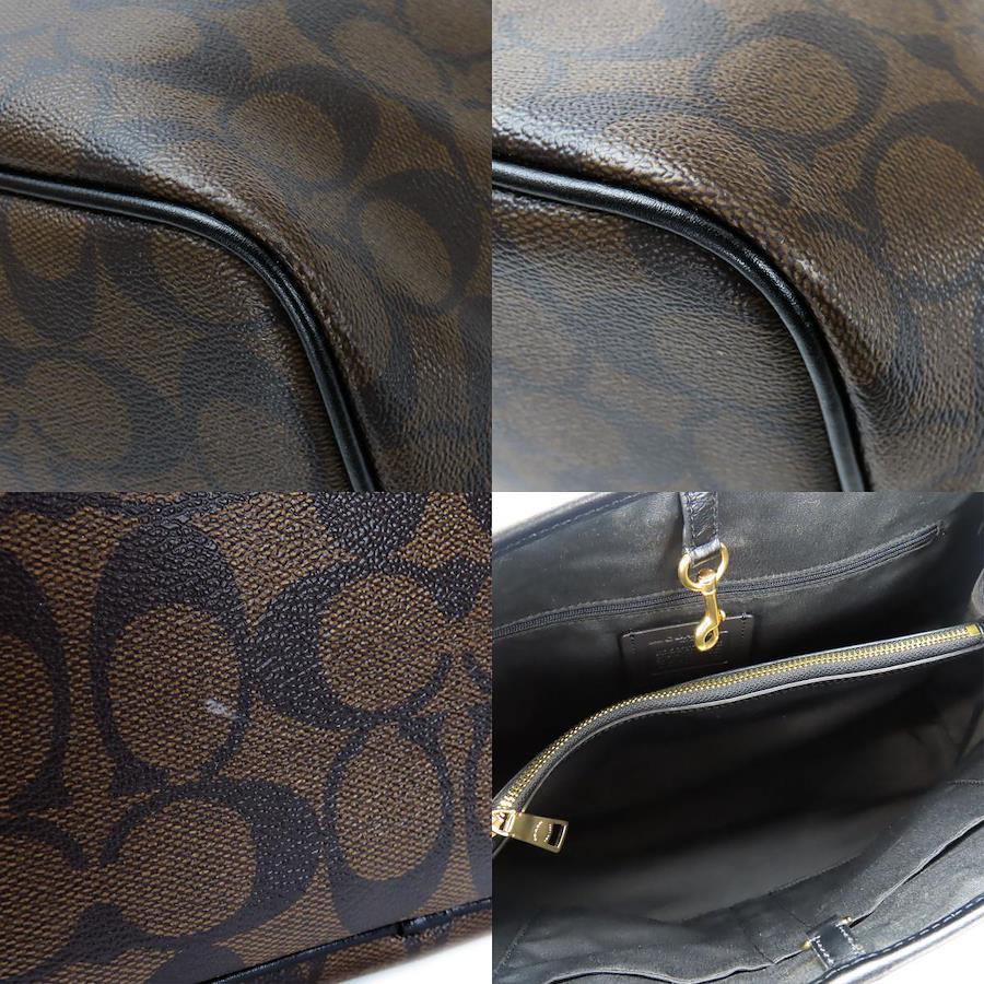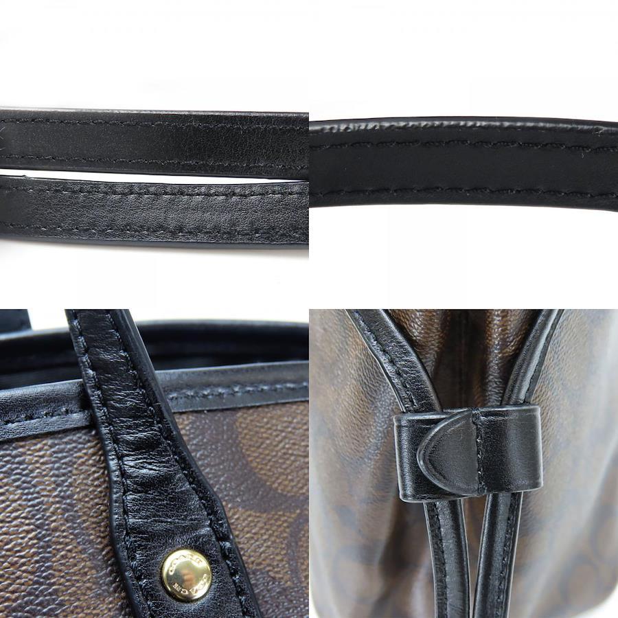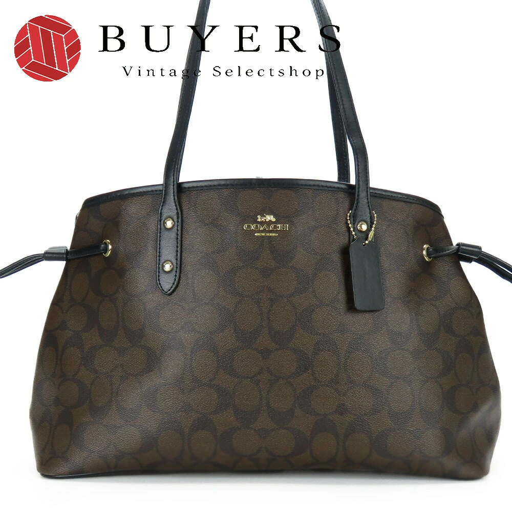 品名【中古】 コーチ トートバッグ F57842 シグネチャー レザー PVC ブラック ダークブラウン ゴールド金具 肩掛け 普段使い カジュアル レディース 女性 COACH