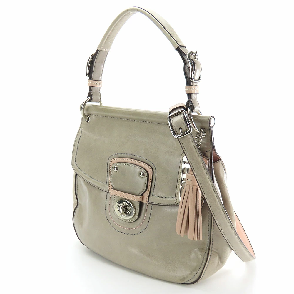 | 品名 | 【中古】 コーチ ハンドバッグ 19031 レザー グレー ピンク ゴールド金具 トップハンドル 2WAY ショルダー レディース 女性 COACH |