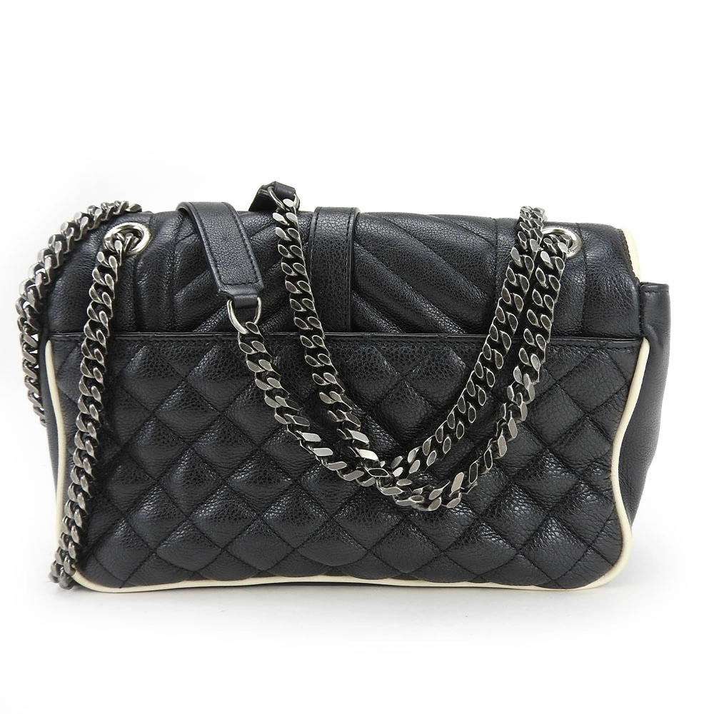 | 品名 | 【中古】 サンローラン ショルダーバッグ サッチェル エンヴェロープ レザー ブラック ブラック アイボリー シルバー金具 肩掛け 斜め掛け YSL レディース 女性 SAINT LAURENT |