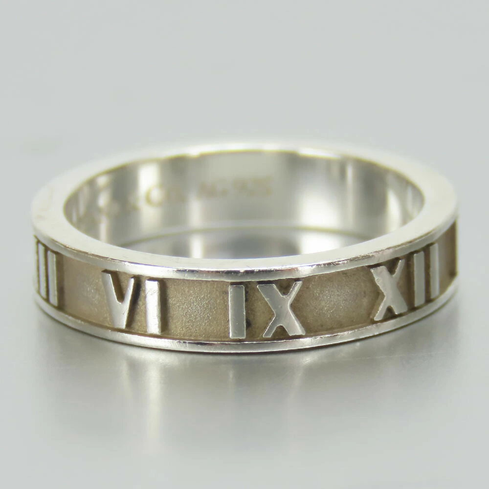 [10% OFF!! Rakuten Fashion THE SALE!!] [Pre-owned] Tiffany & Co. Atlas Ring, 925 Sterling Silver, Approx. 3.2g, Narrow Silver with Roman Numerals, Women's, TIFFANY & Co.