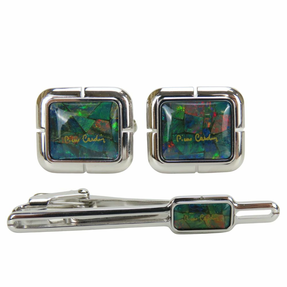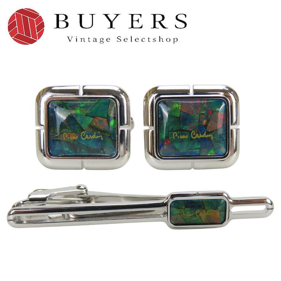 | 品名 | 【中古】 ピエールカルダン カフス メタル シルバー グリーン系 カフス・タイピンセット スーツ アクセサリー メンズ 男性 Pierre Cardin |
