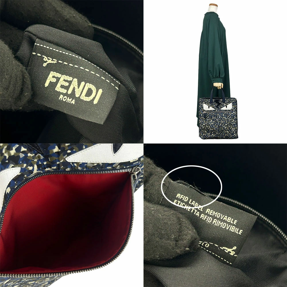 | 品名 | 【中古】 フェンディ トートバッグ バッグバグズ 7VA367 ナイロン レザー ネイビー シルバー金具 モンスター カモフラ FENDI |
