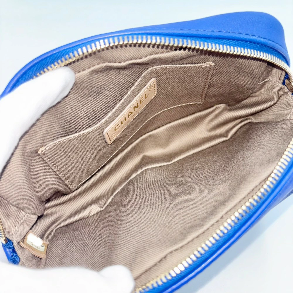 [17% OFF] Chanel Women's Waist Bag, Chain Body Bag with Coco Mark, Waist Pouch, Coco Bag, CHANEL Leather, Blue, Gold Hardware, Excellent Condition [Pre-owned]